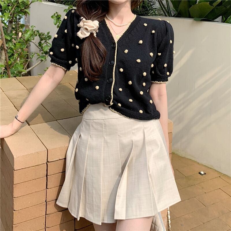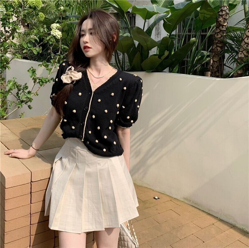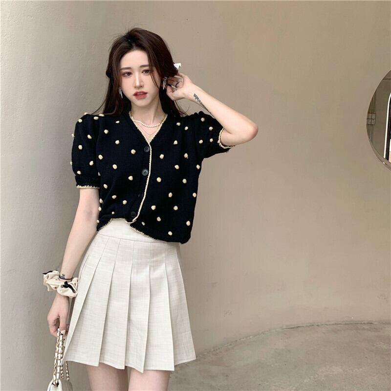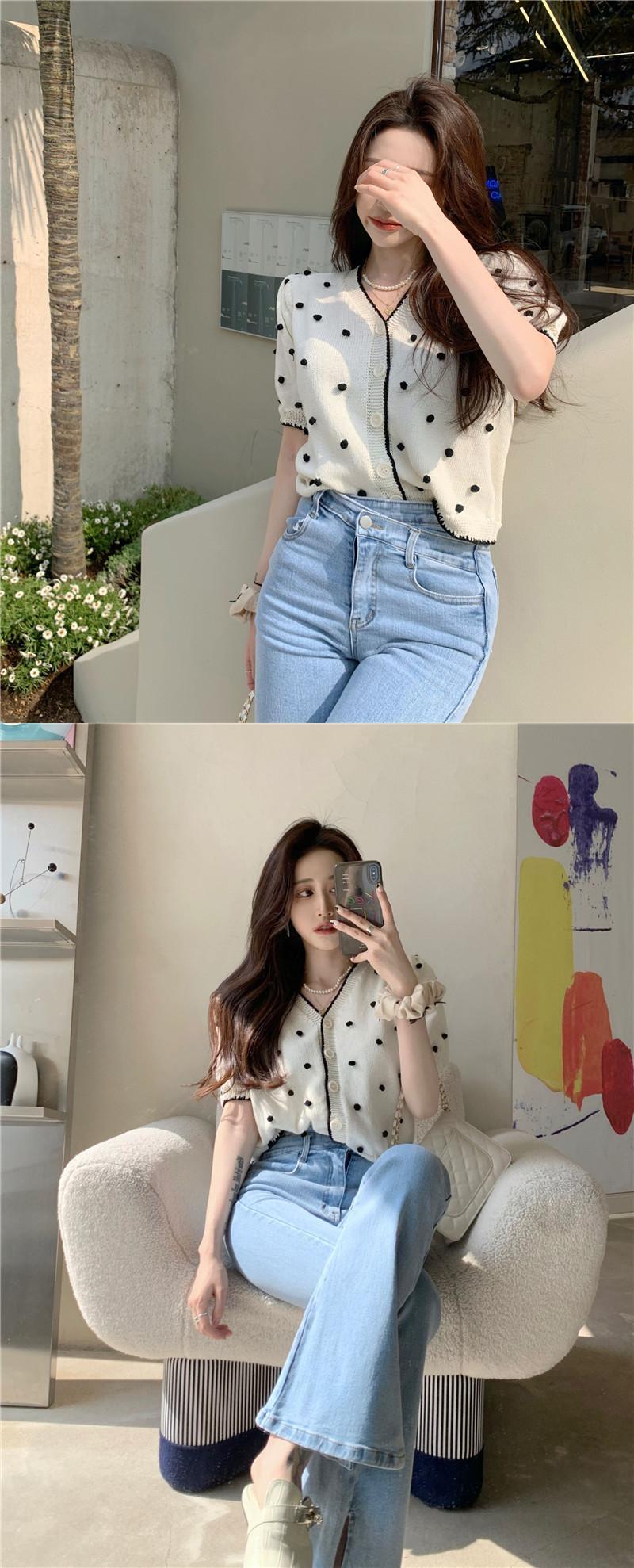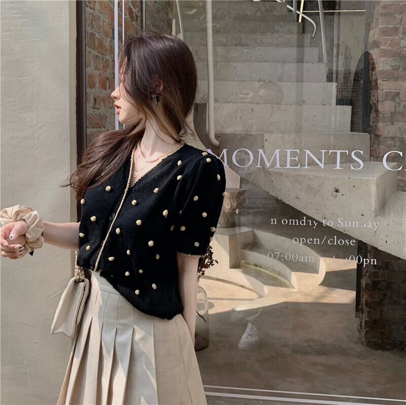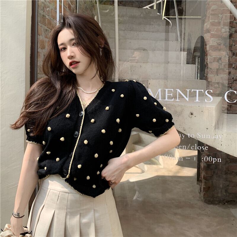 ショートニットカーディガンサマーレッドVネック薄手 夏物 YY-ファッション94131148172