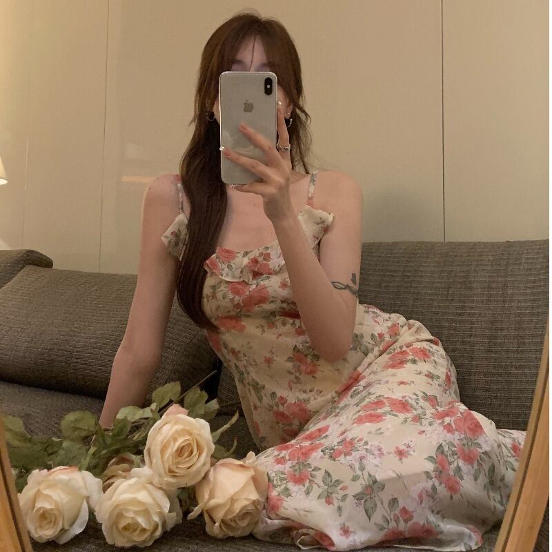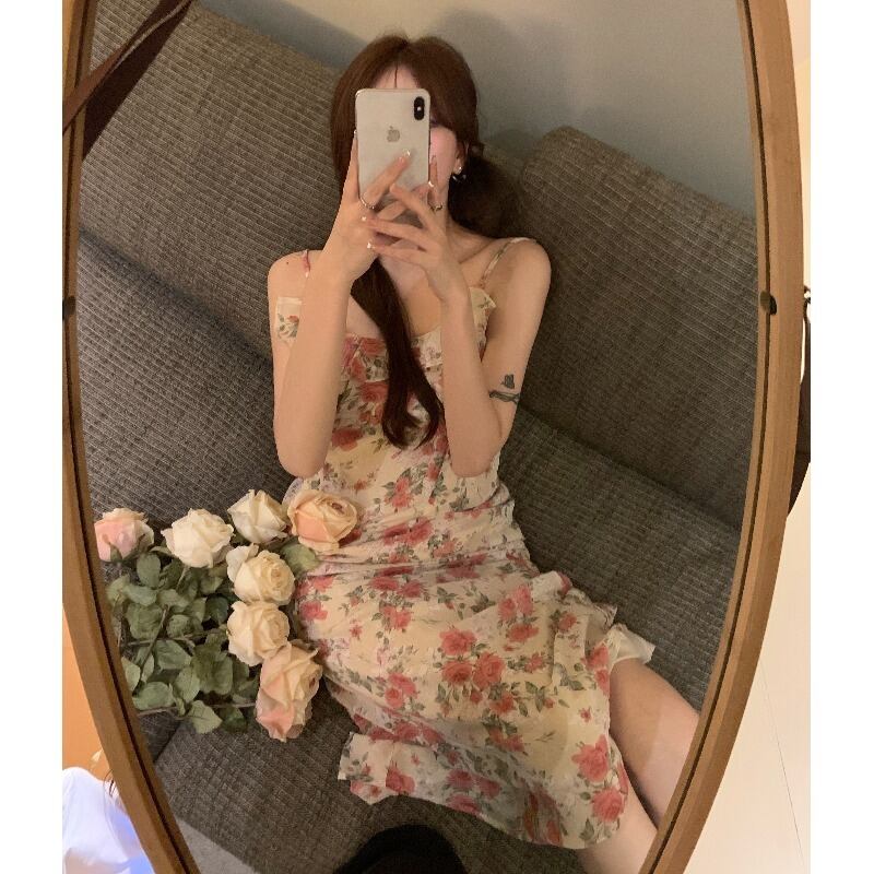 スタイルフローラルドレス サマースタンダードストラップレススカート ウェスト レトロ 夏物 花柄 YY-ファッション19618478988