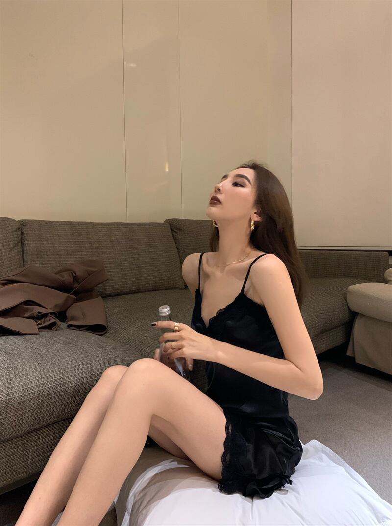 レース薄手サマーブラックショートスカート 夏物 シルク ピュア YY-ファッション99384669703