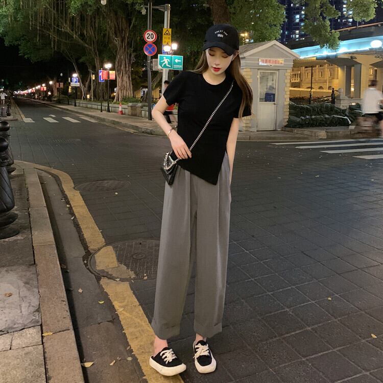 Tシャツ サマースタンダードブラック レトロ 大人ガーリー スウィート キュート カジュアル 夏物 YY-ファッション77648566210