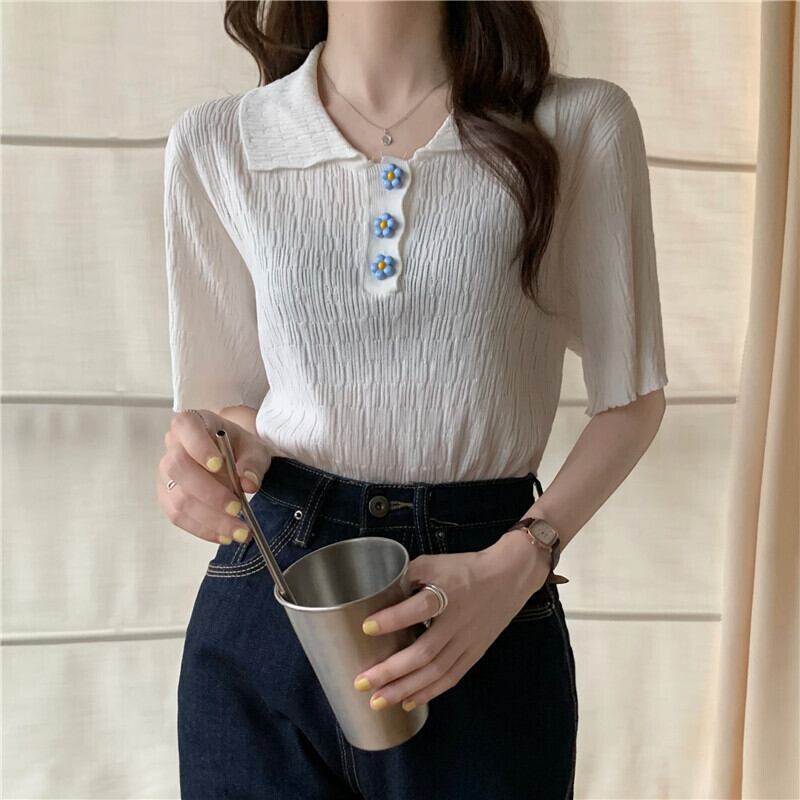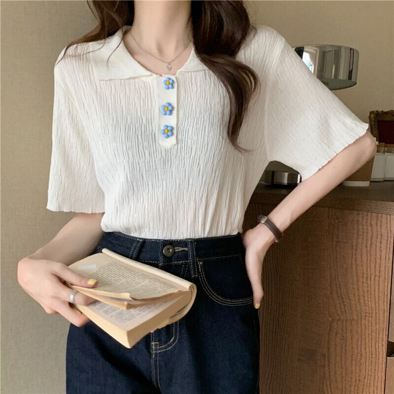ショートTシャツ サマー薄手ルーズスタイルホワイトトップス 夏物 YY-ファッション3211270323