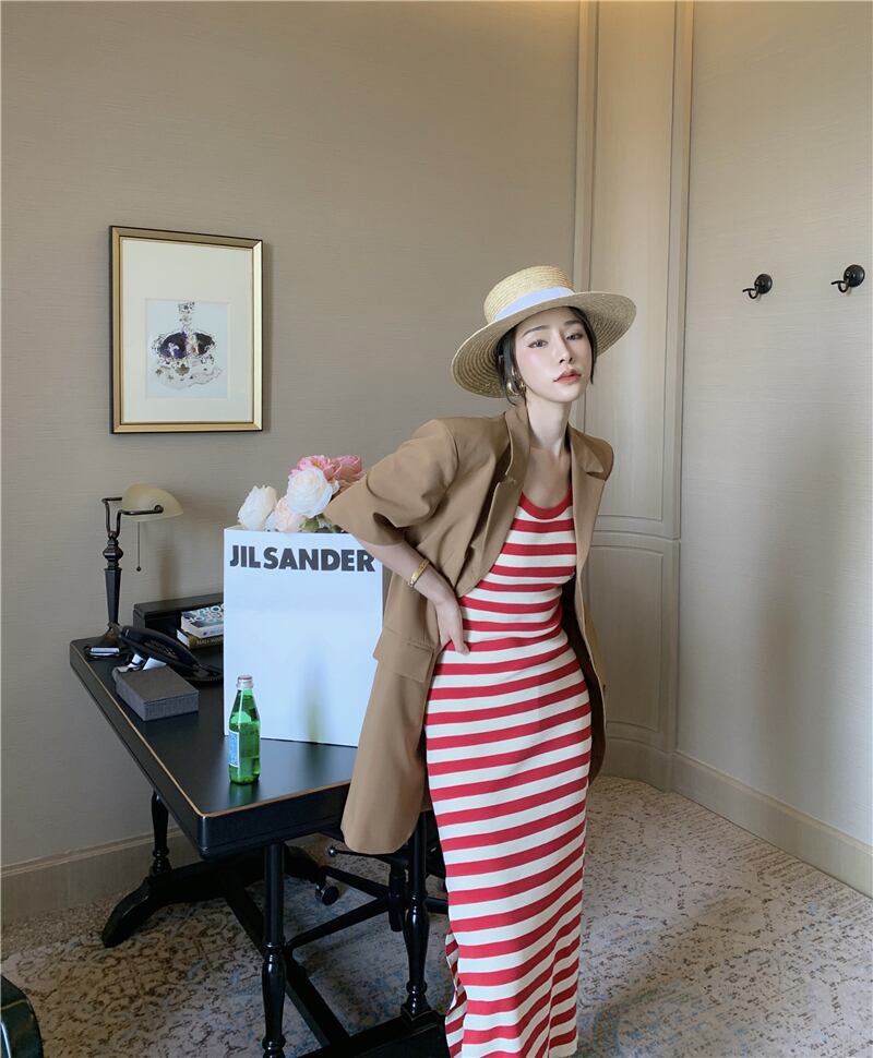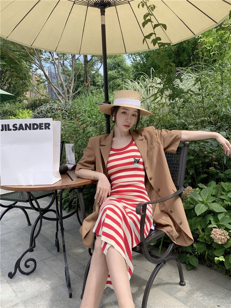 サマースタイルレッドストライプスリムウェストドレス レディース 夏物 YY-ファッション50679178535