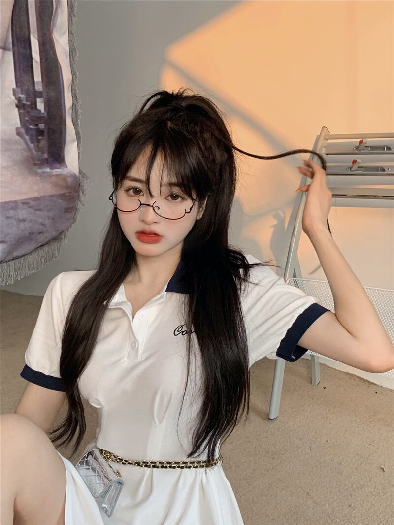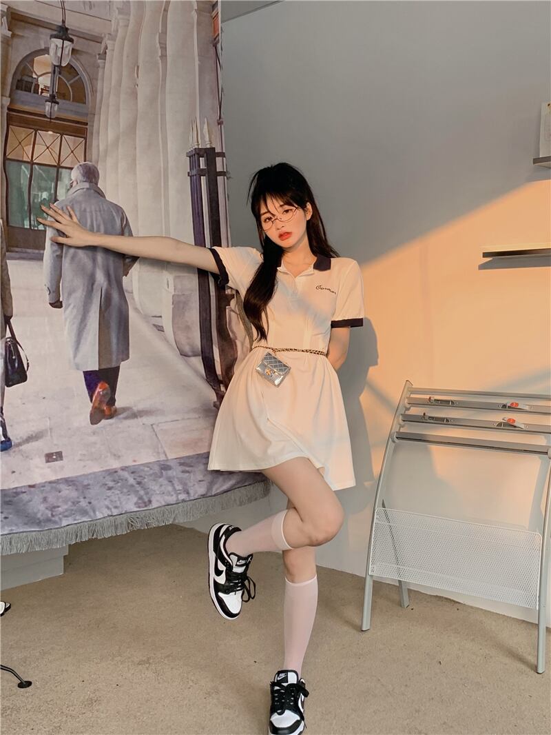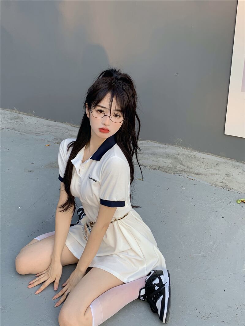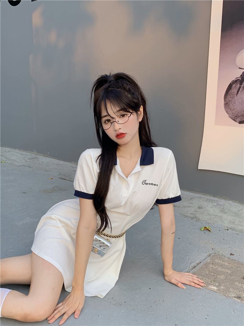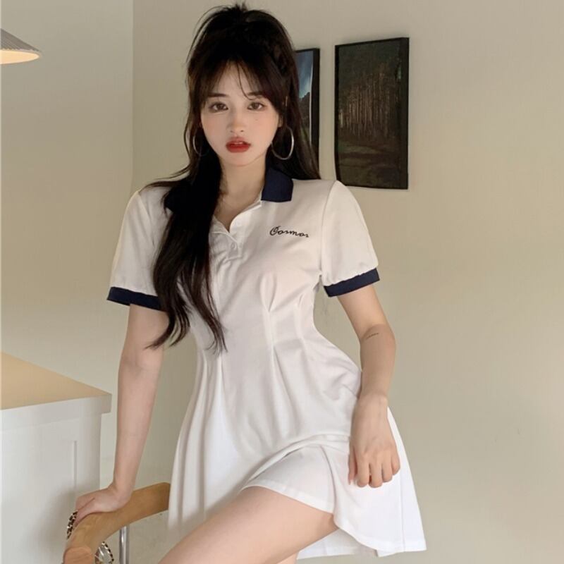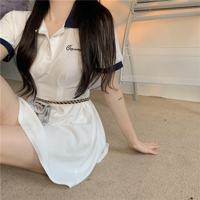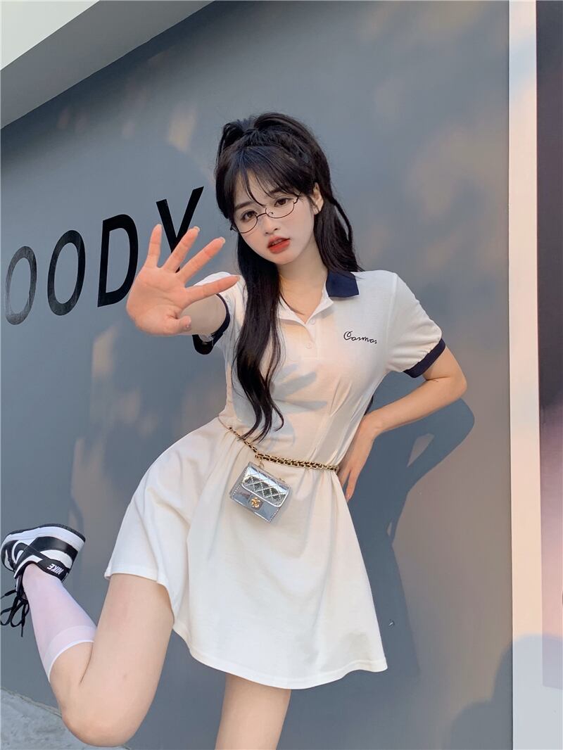 サマースタイルカラー半袖スリーブドレス ウェストスリムスカート ショート ハーフスリーブ 夏物 YY-ファッション34951358578