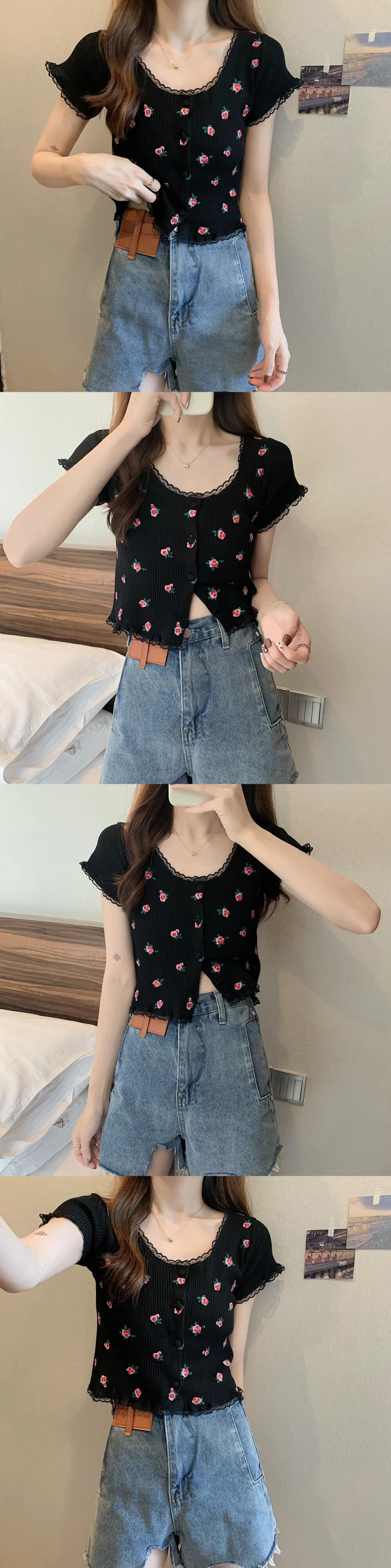 Flowerデザイン Tシャツ トップス レディースサマー薄手ニットセーター 夏物 フラワーデザイン YY-ファッション22747325902