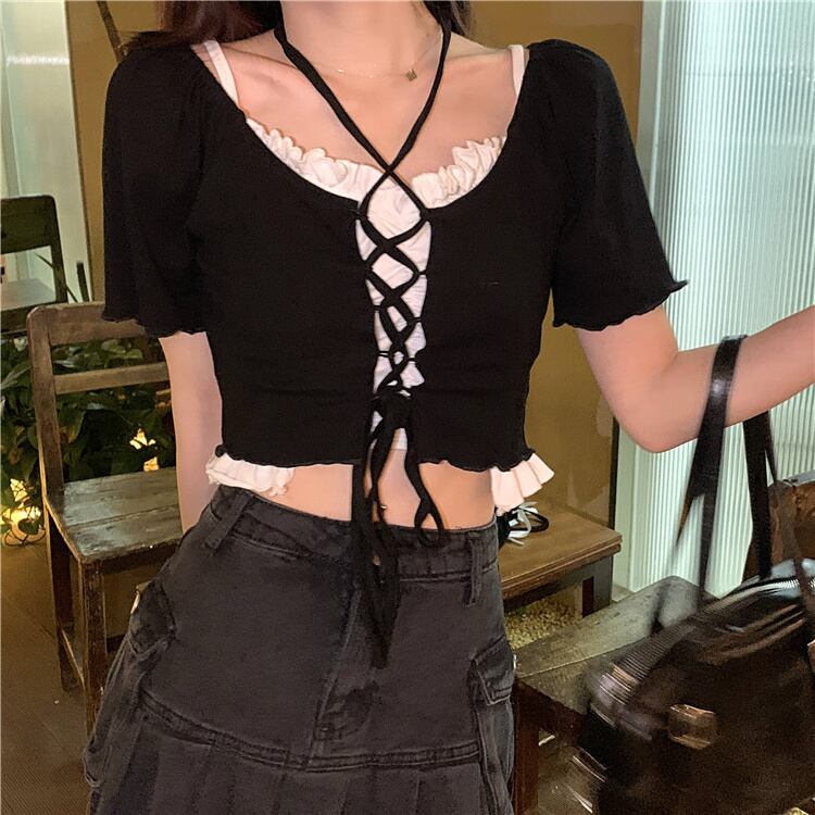 バンドTシャツ サマーショートトップス 大人ガーリー スウィート キュート カジュアル 夏物 ピュア YY-ファッション67087136307
