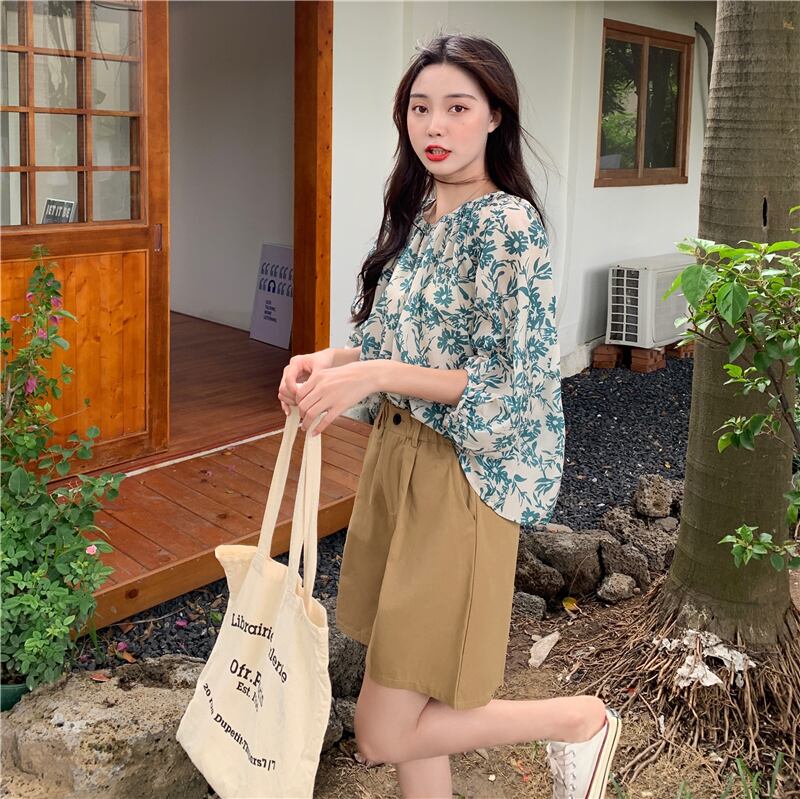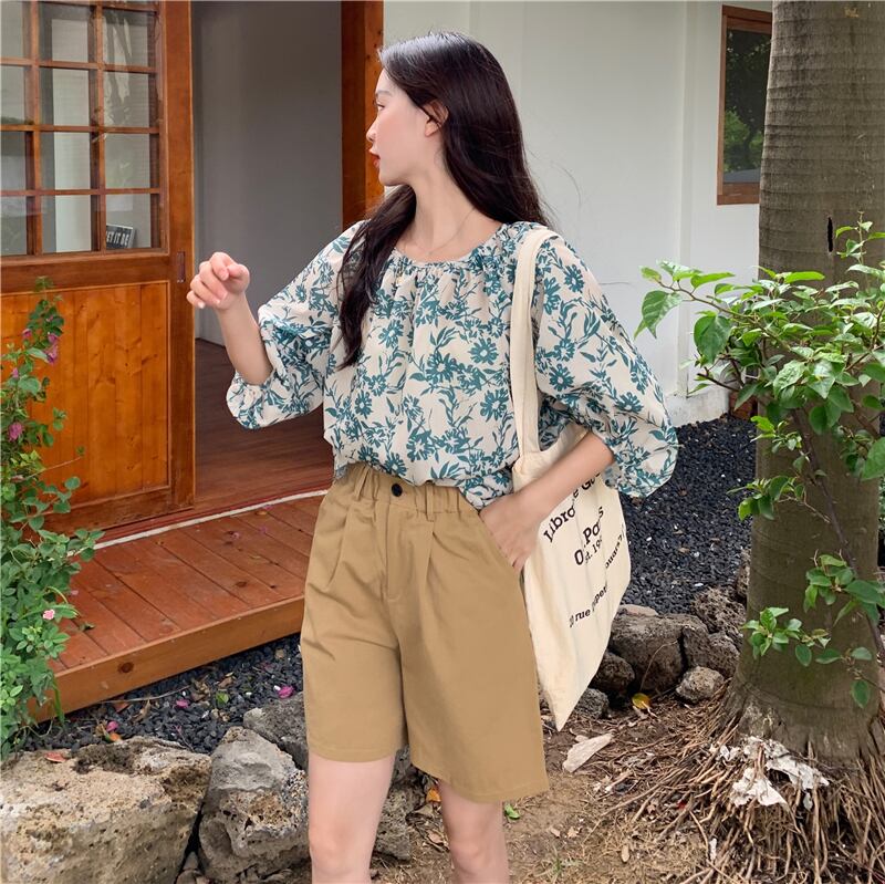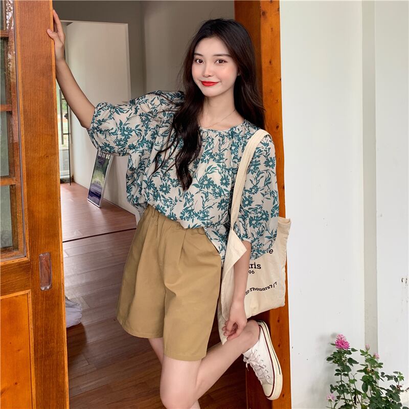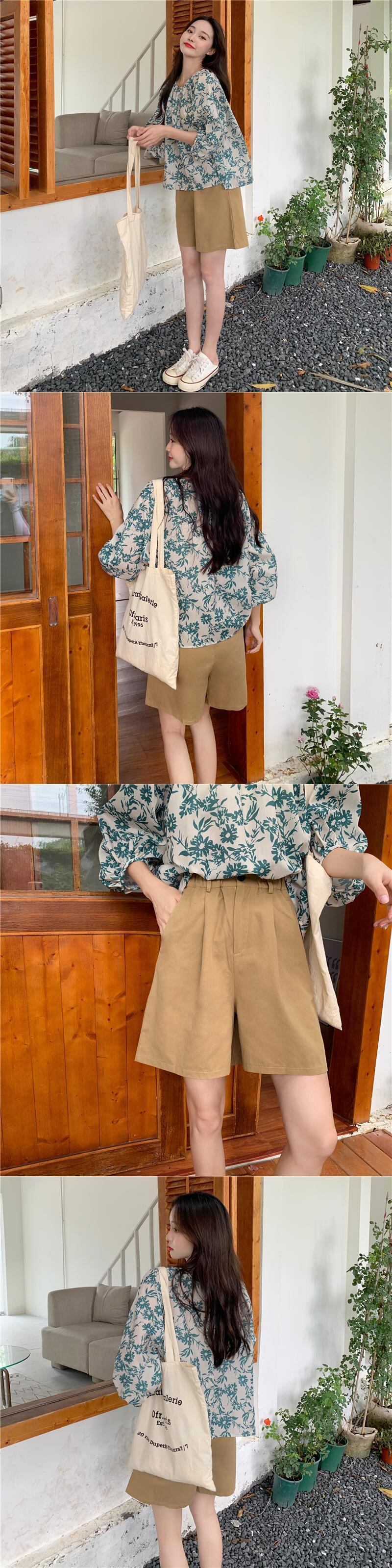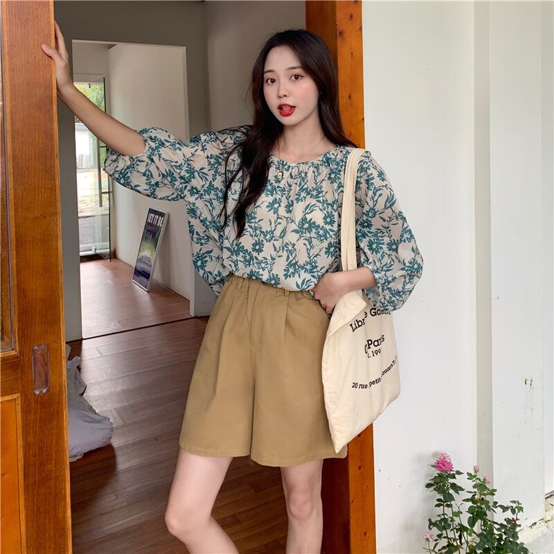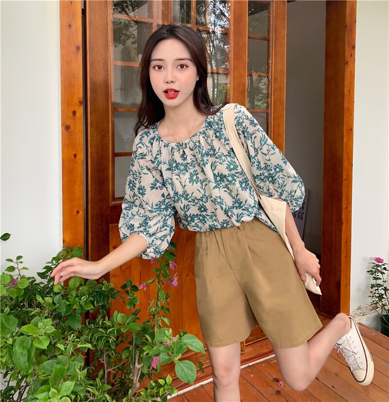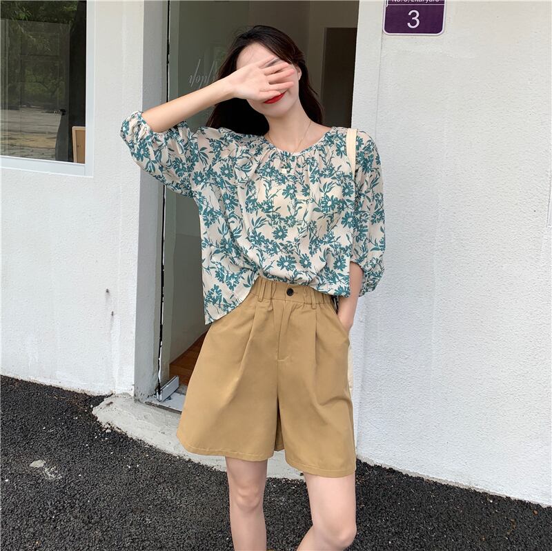 パンツ サマースタンダードフローラルスリーブシャツ カジュアルワイドレッグショーツ レトロ 夏物 ブルマー 花柄 ワイドパンツ YY-ファッション33464899514