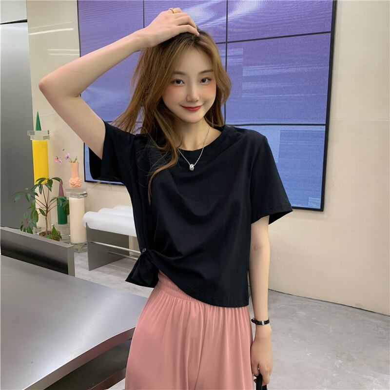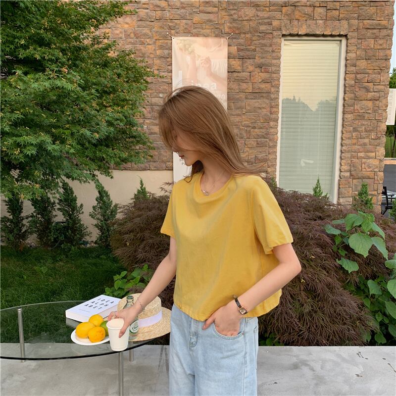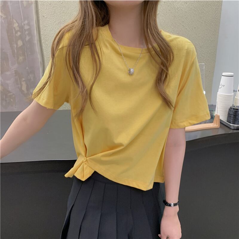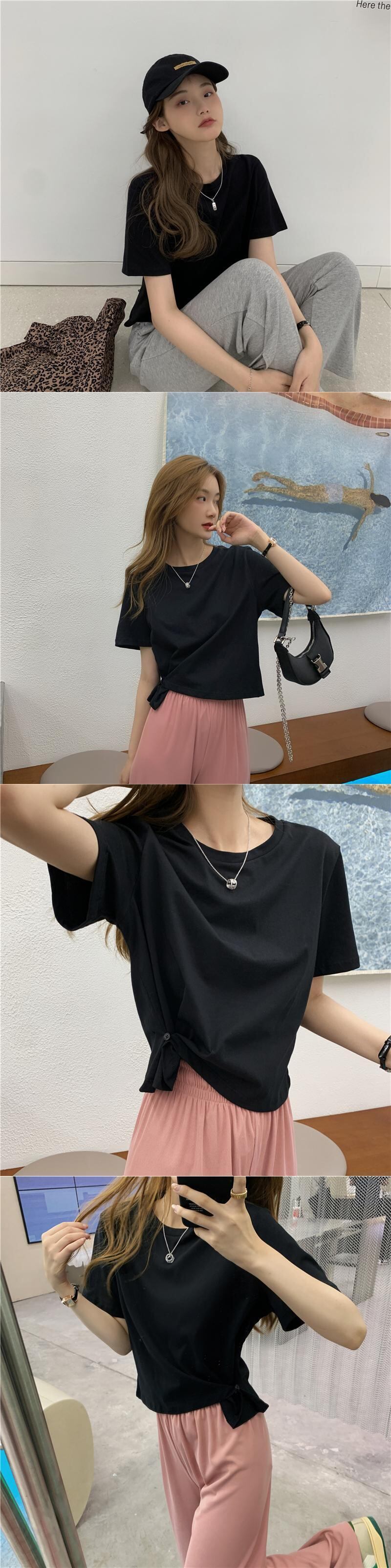 ショートTシャツ サマーウェストボタンソリッド カラートップス 夏物 ソリッドカラー YY-ファッション25959301209