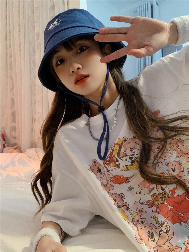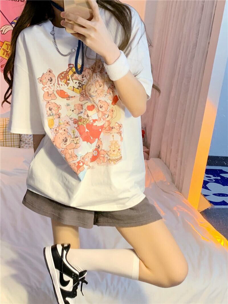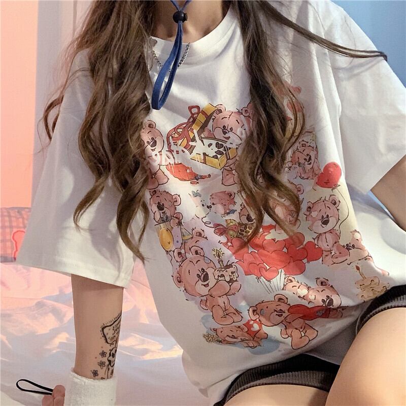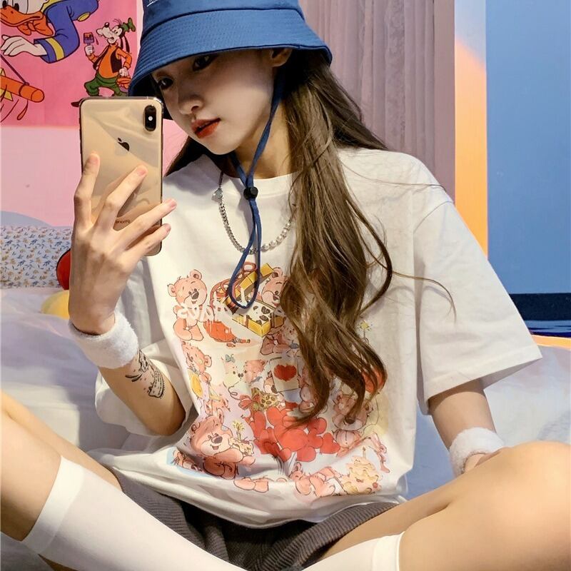プリント柄ホワイトTシャツ トップス ルーズサマー薄手 夏物 YY-ファッション5137176397
