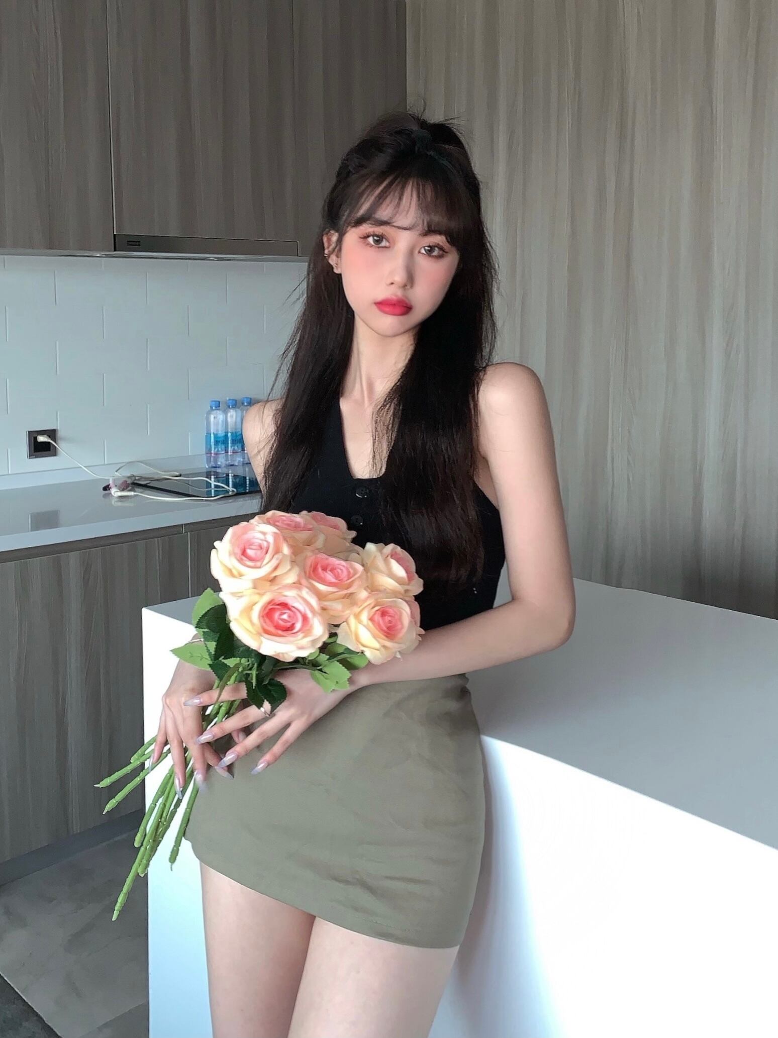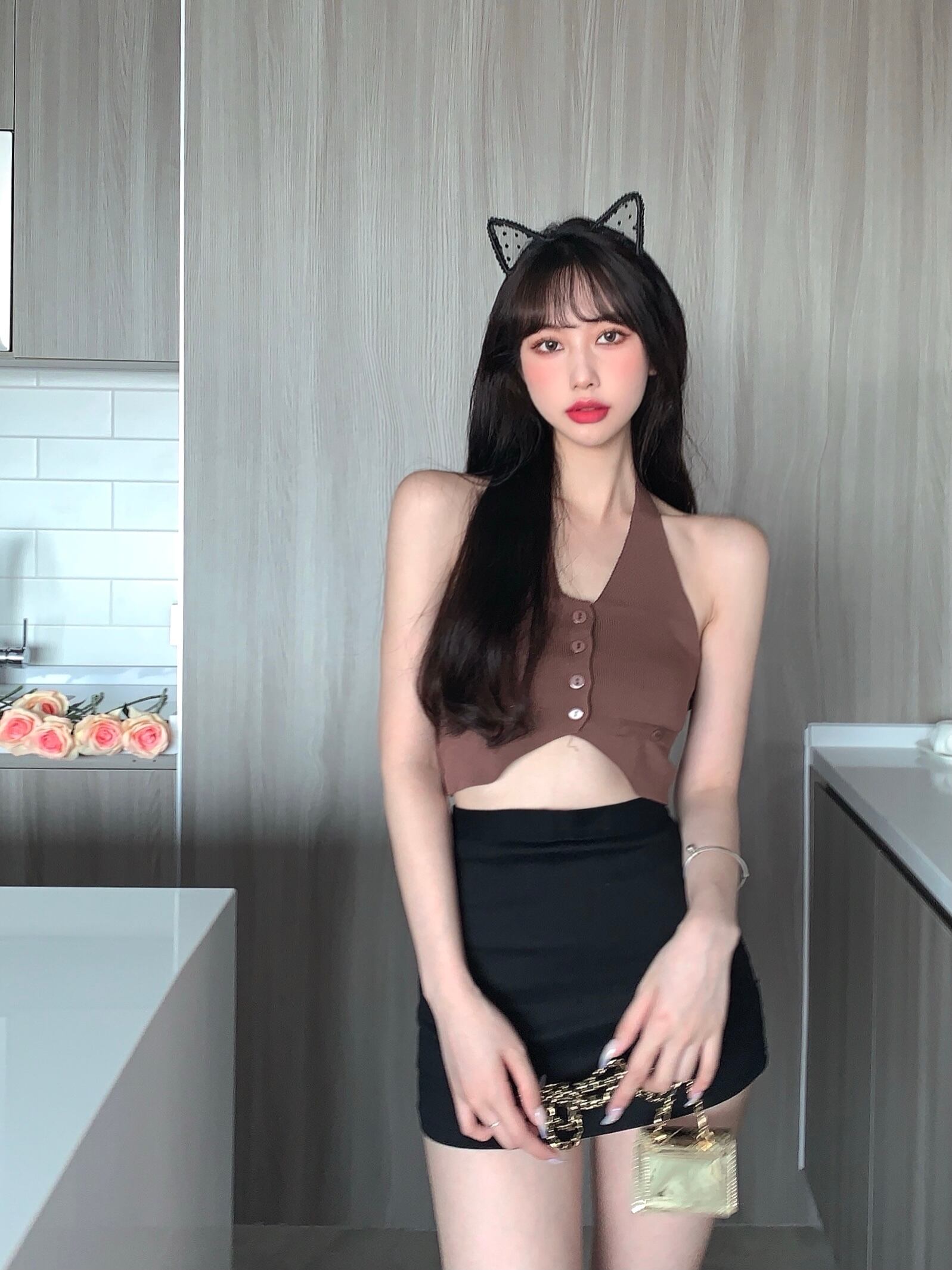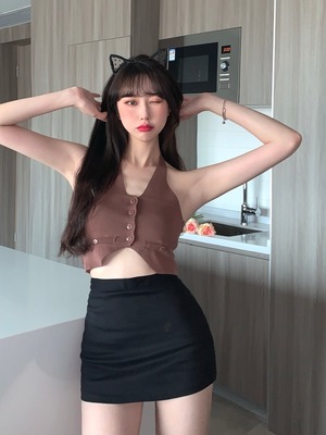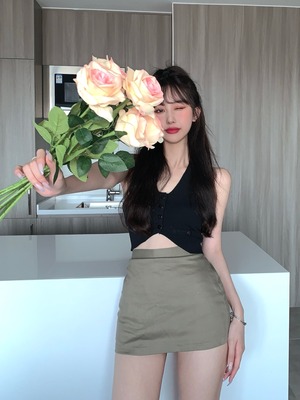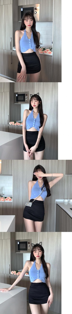 色:コーヒー色のスリング,青いスリング,ブラックサスペンダー,アーミーグリーンデニムスカート,ブラックデニムスカート
