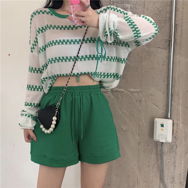 色:ピンクニット,グリーンニット,ピンクのショートパンツ,グリーンショートパンツ