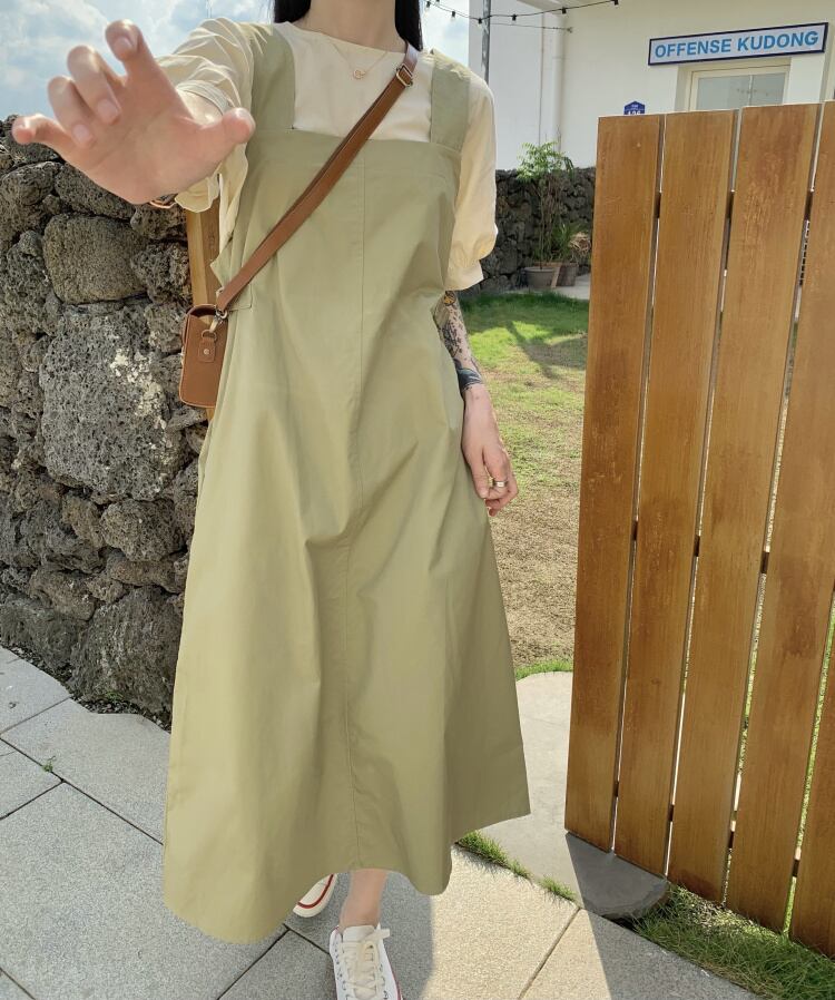 色:アプリコットシャツ,白のシャツ,カーキ色のドレス,緑のドレス