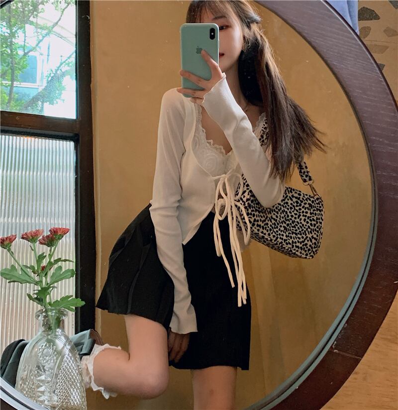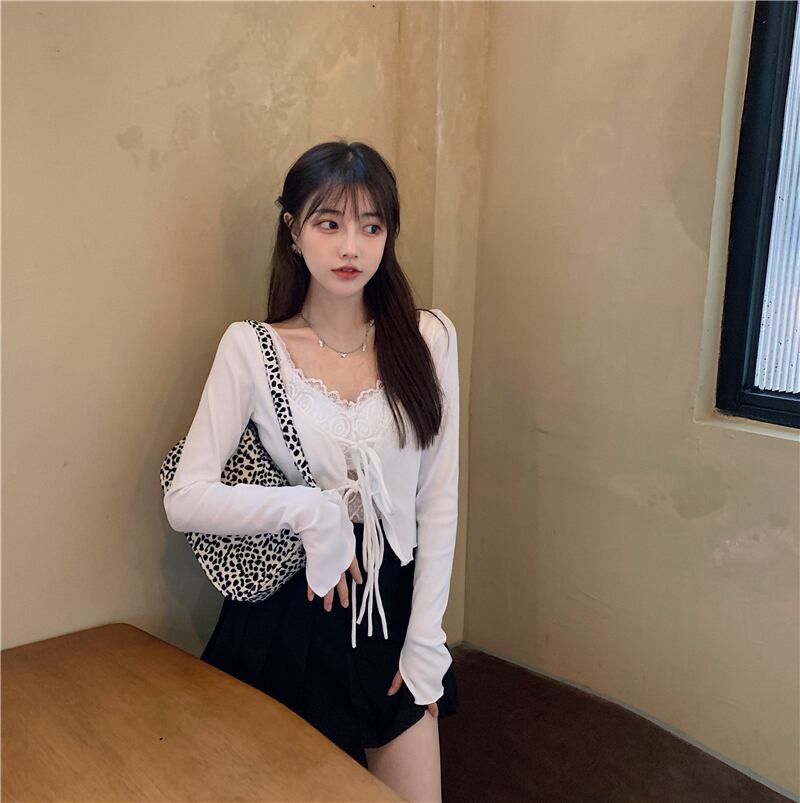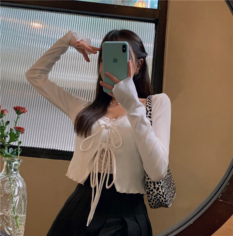 ショートレースVネックニットトップス レディースサマーカーディガン薄手ジャケット 夏物 シルク YY-ファッション25912449727