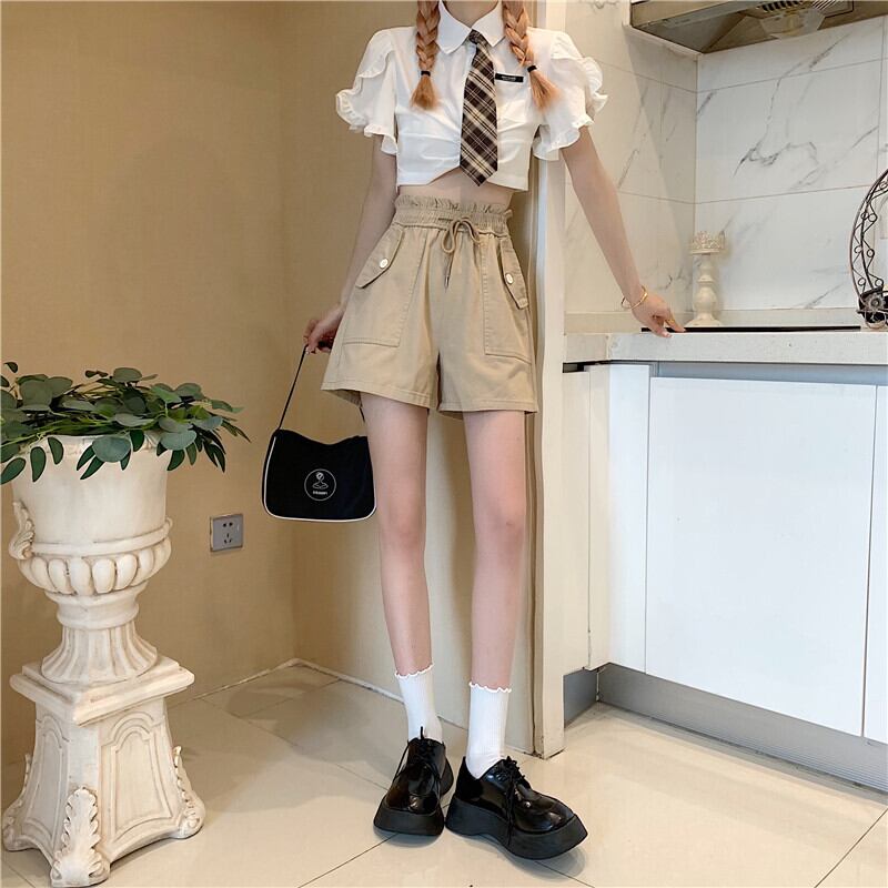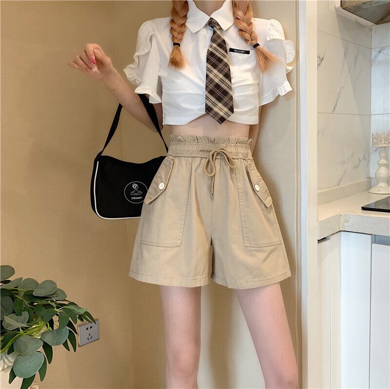 サマーギャザーハイウェストウェストパンツ 薄手ルーズカジュアルショーツ レディース 夏物 ブルマー YY-ファッション60396638534