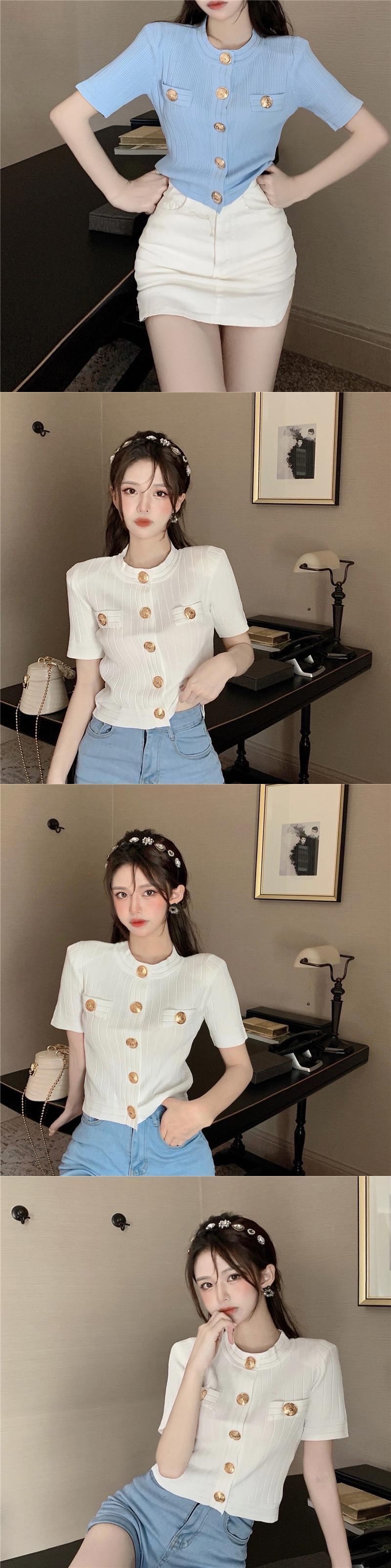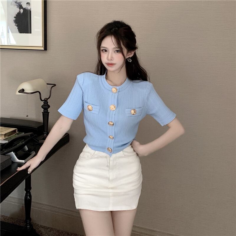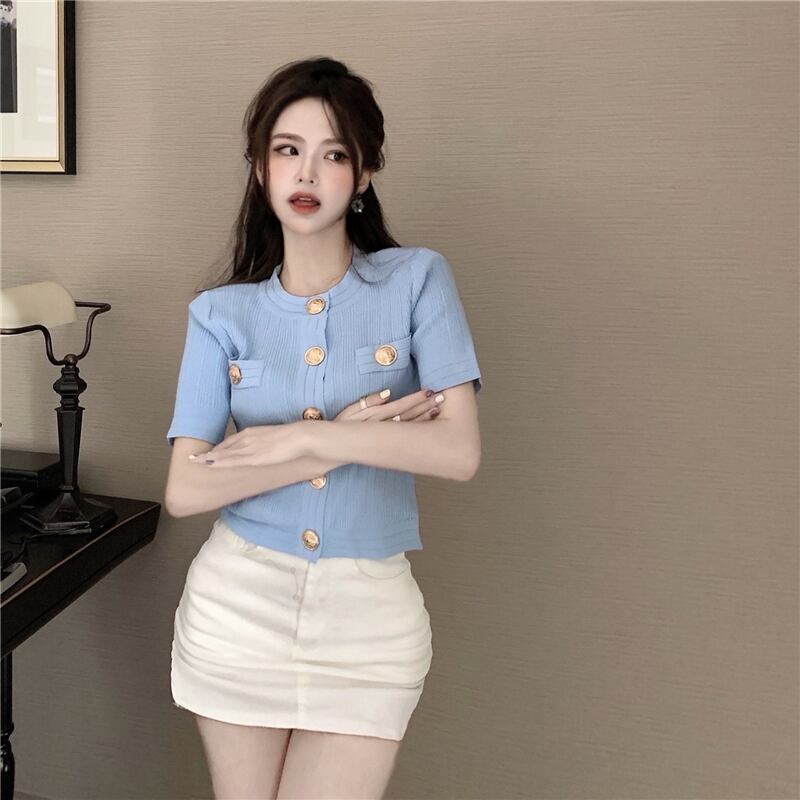 ニット サマー薄手スタンダードシャツ ショートトップス レトロ 夏物 シルク YY-ファッション26210742850