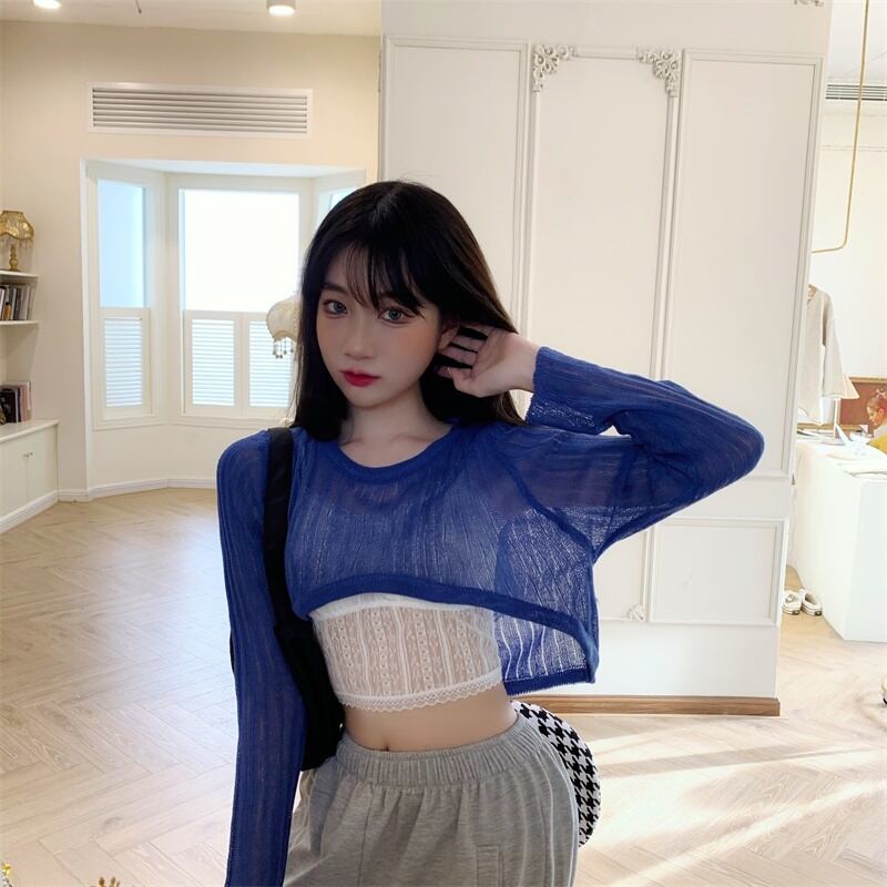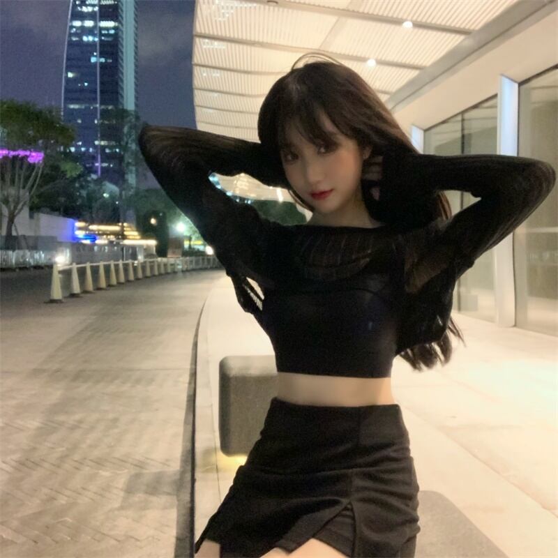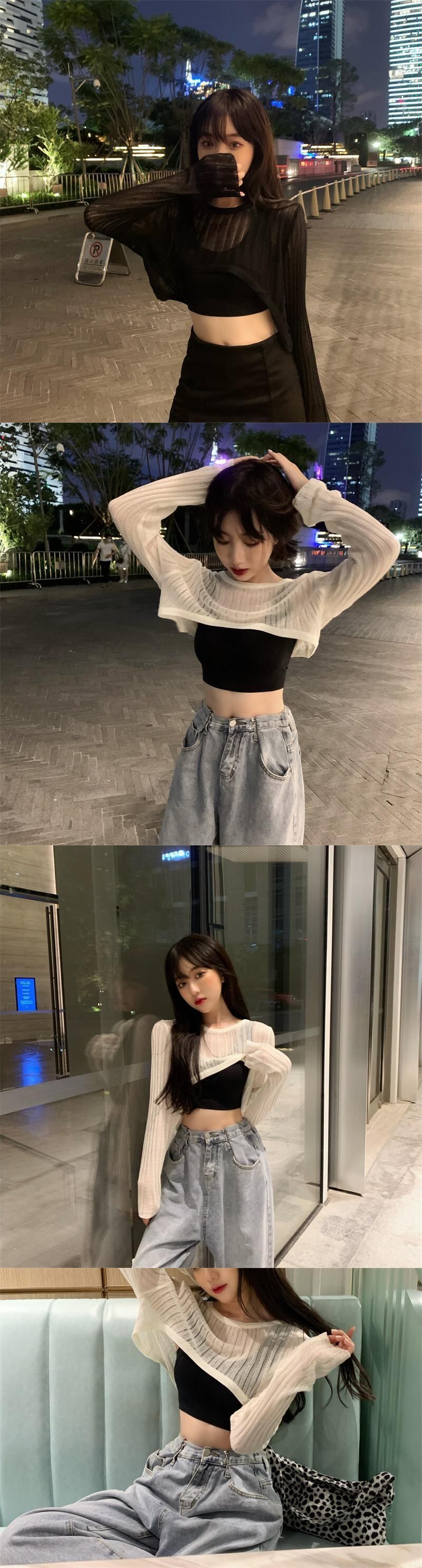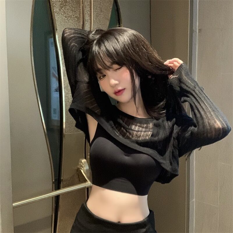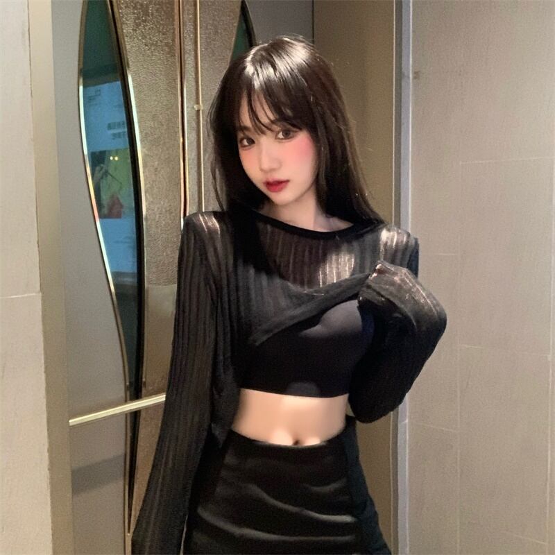 ショートブラックニットセーター サマージャケット ブラウス ロング 夏物 YY-ファッション66502589673