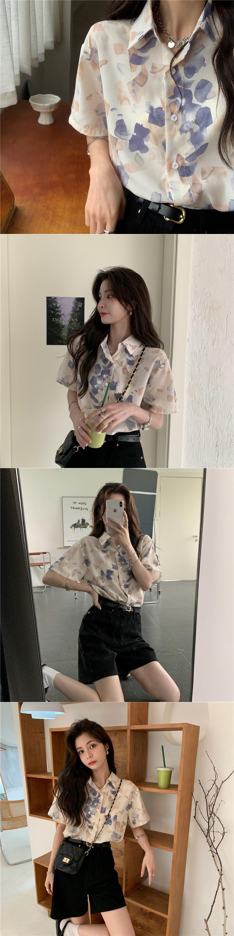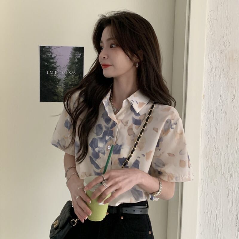 スタンダードシャツ シフォンサマートップス レトロ 夏物 YY-ファッション32231777126