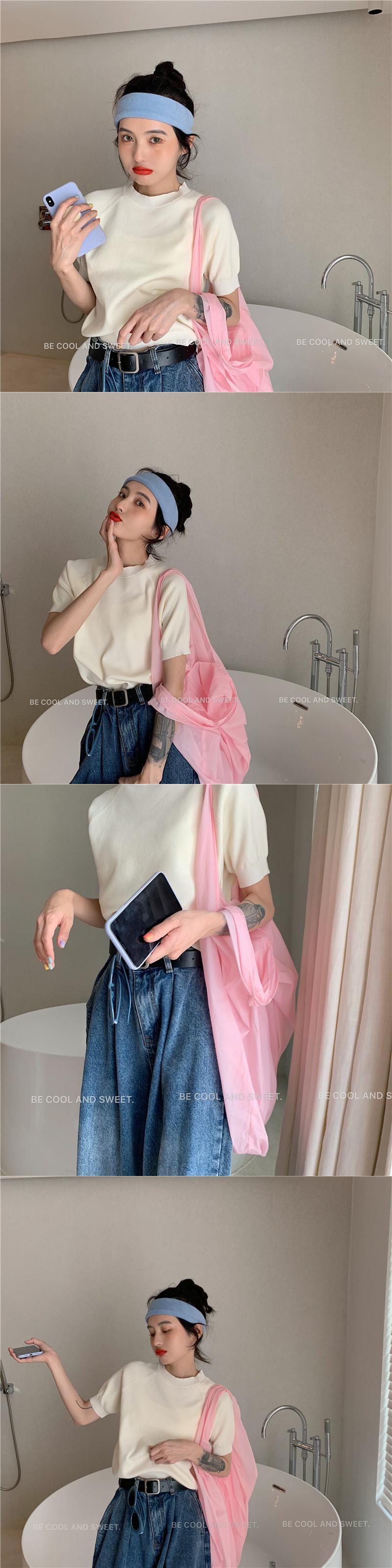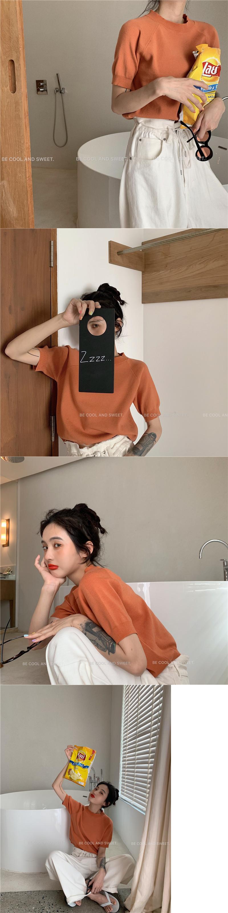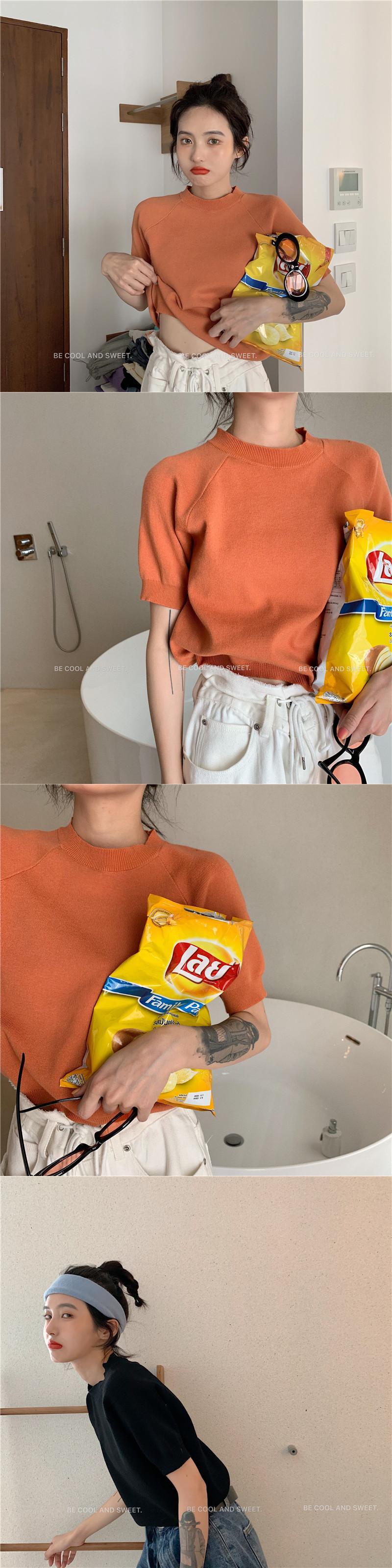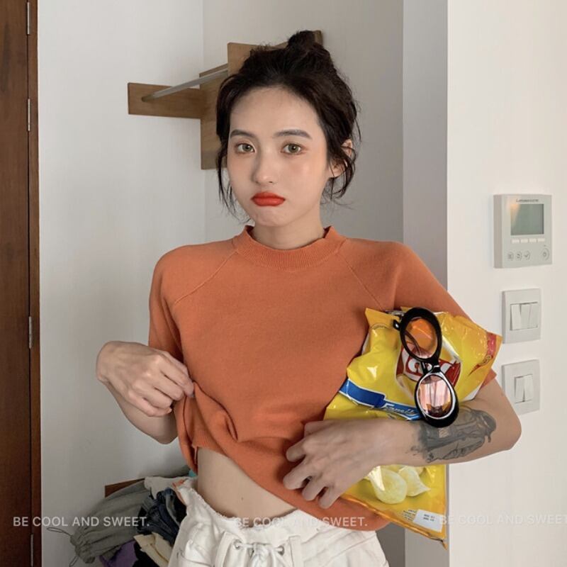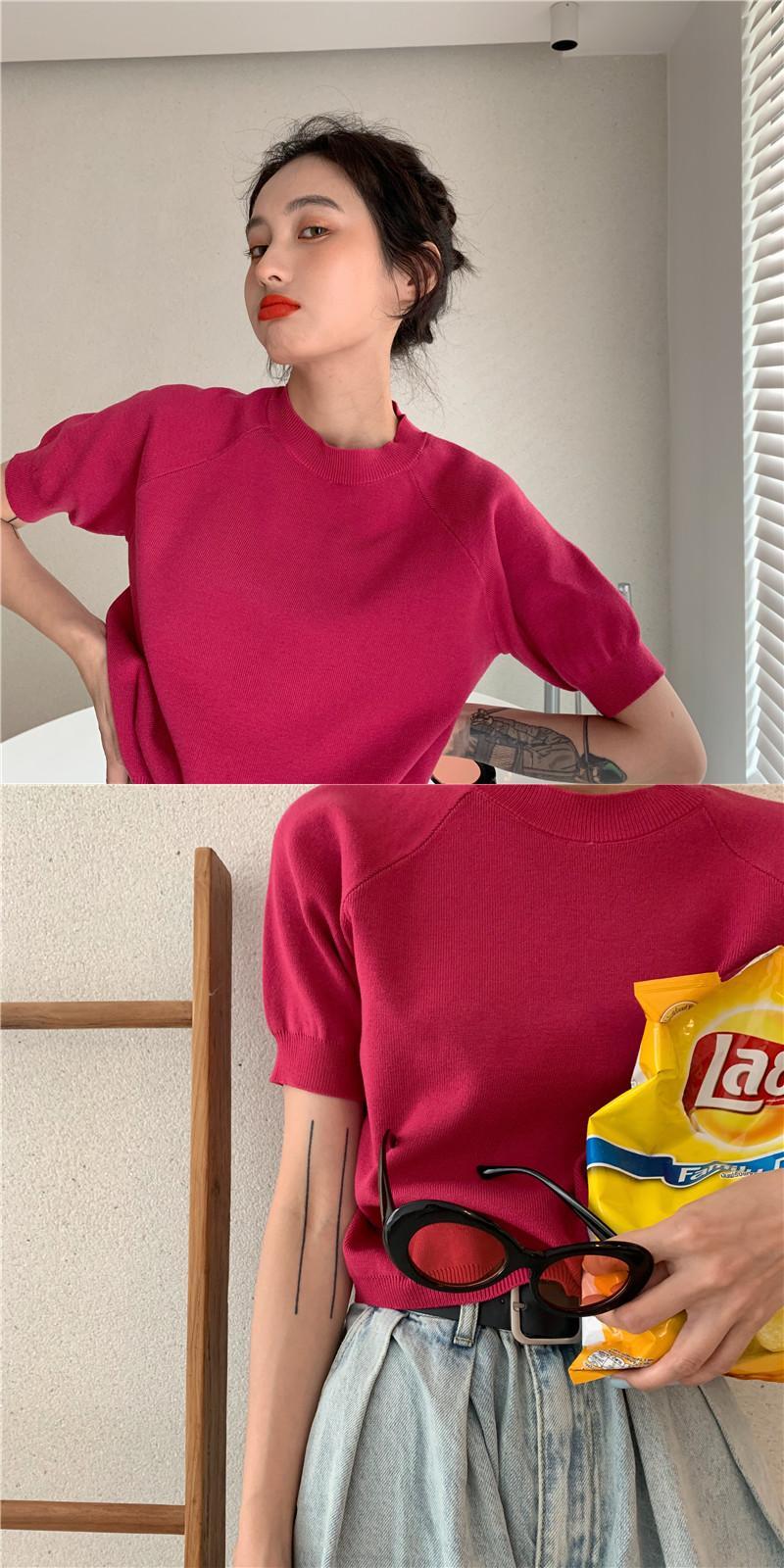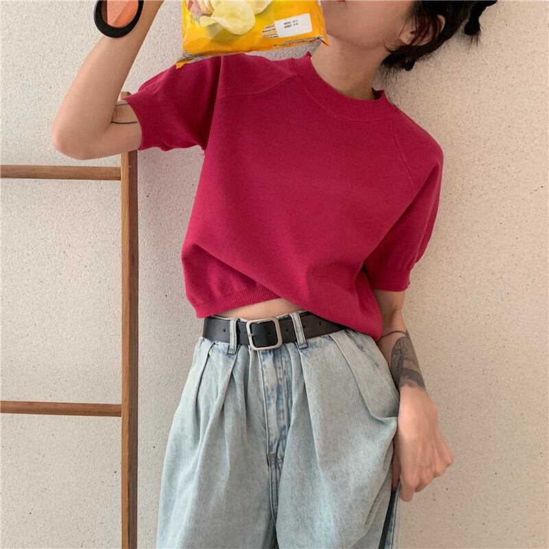 ニットセーター レッドショートクロップドラウンドネックトップス スプリングサマースタイル 春物 夏物 Oネック YY-ファッション4913145201