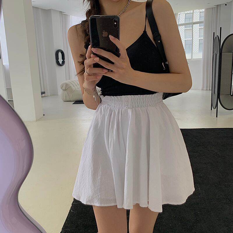 ストレッチハイウェストウェストカジュアルパンツ レディースサマー薄手Aラインショーツ ルーズホワイト エラスティック 伸縮 夏物 ブルマー YY-ファッション81631526424