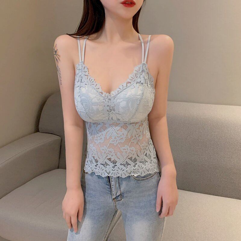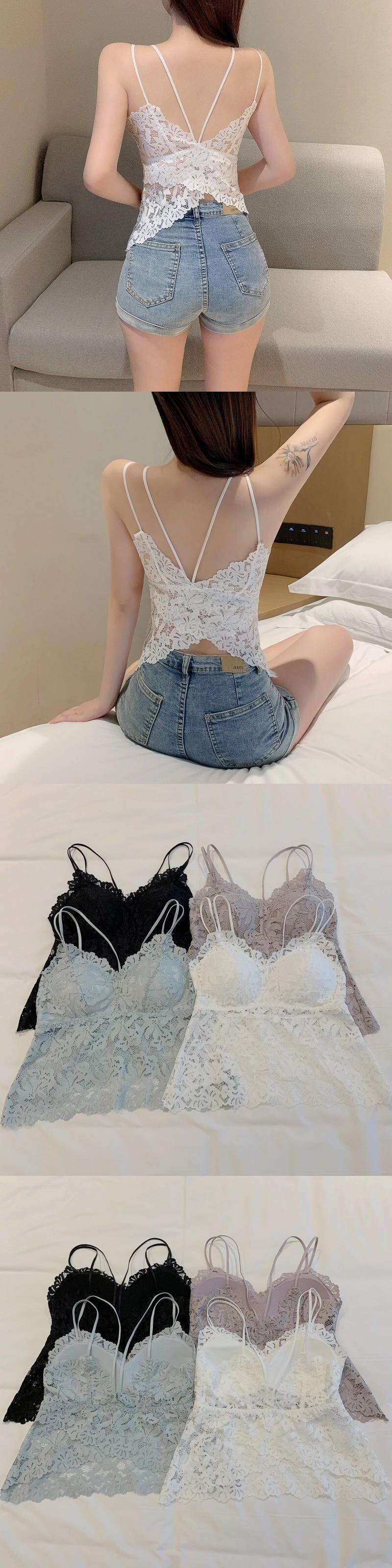 Vネックホルターサマースリム薄手レーストップス 夏物 YY-ファッション99009659540