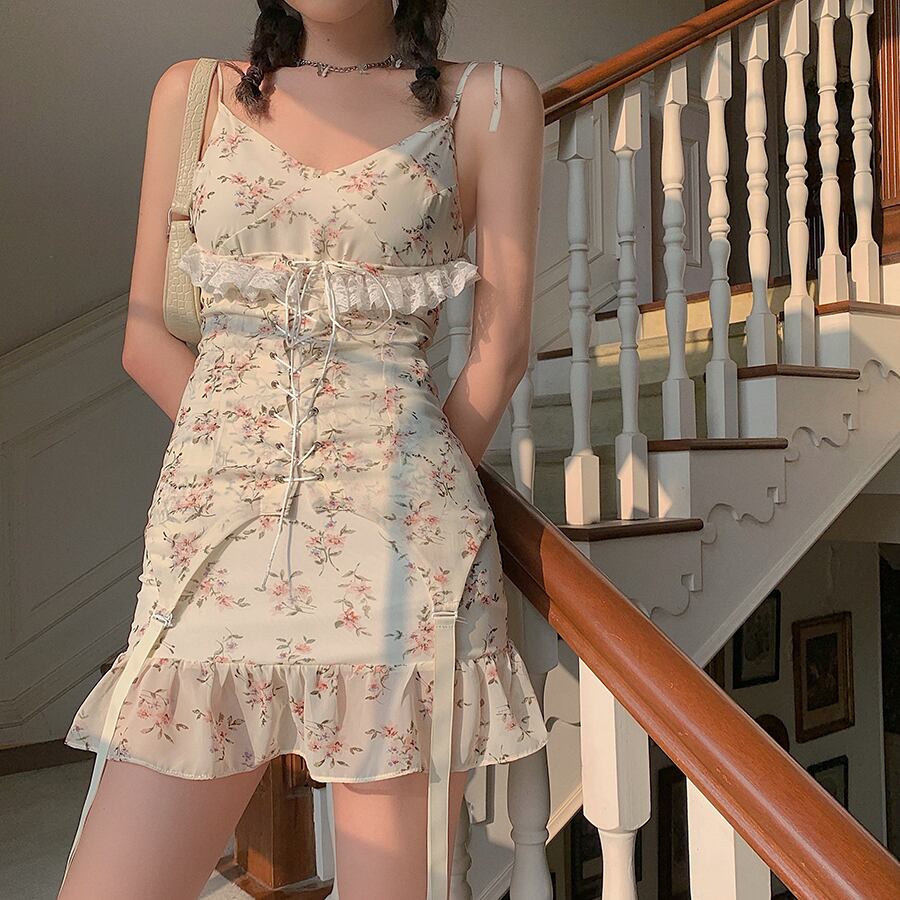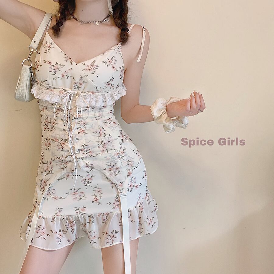 スカート スプリングサマースタイルVネックスリムフローラルドレス 大人ガーリー スウィート キュート カジュアル 春物 夏物 花柄 YY-ファッション35507022442