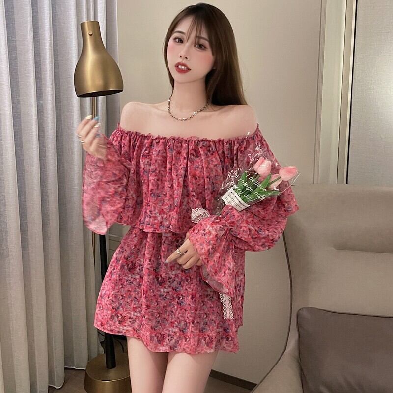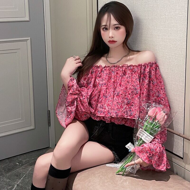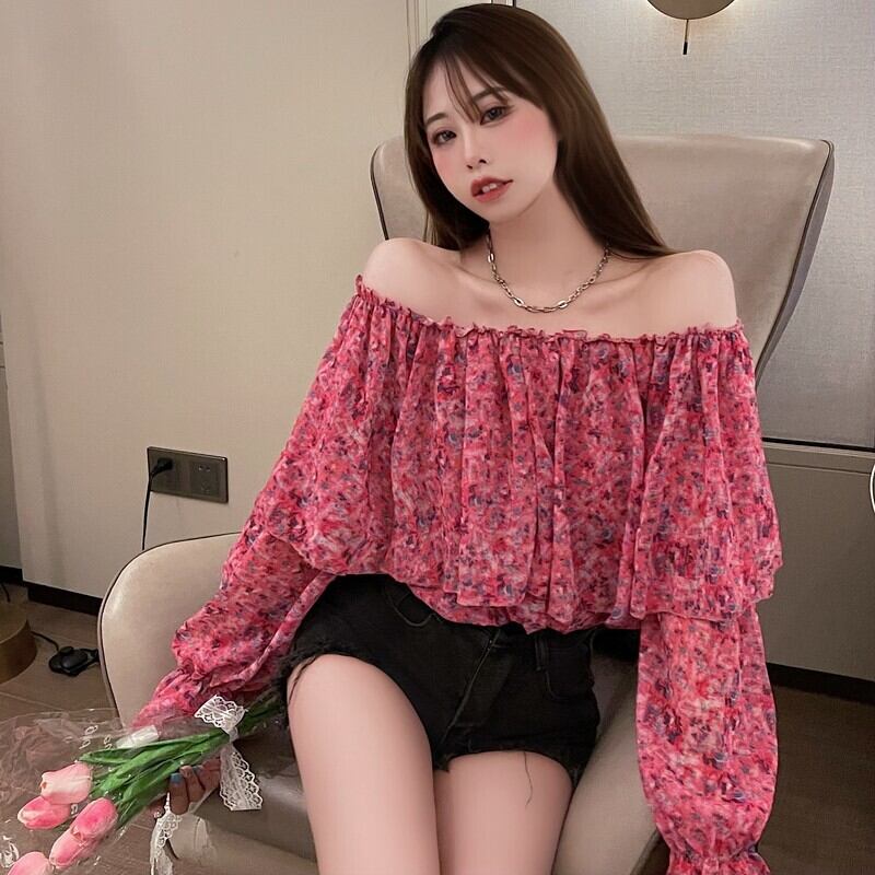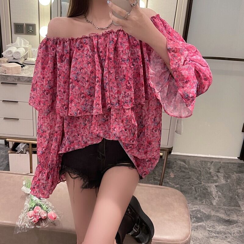 フローラルブラウス サマールーズシフォンシャツ ロング 夏物 花柄 オフショルダー YY-ファッション89918830615