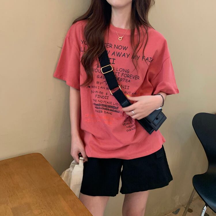 スタンダードTシャツ サマールーズレッド レトロ 夏物 YY-ファッション52441496219