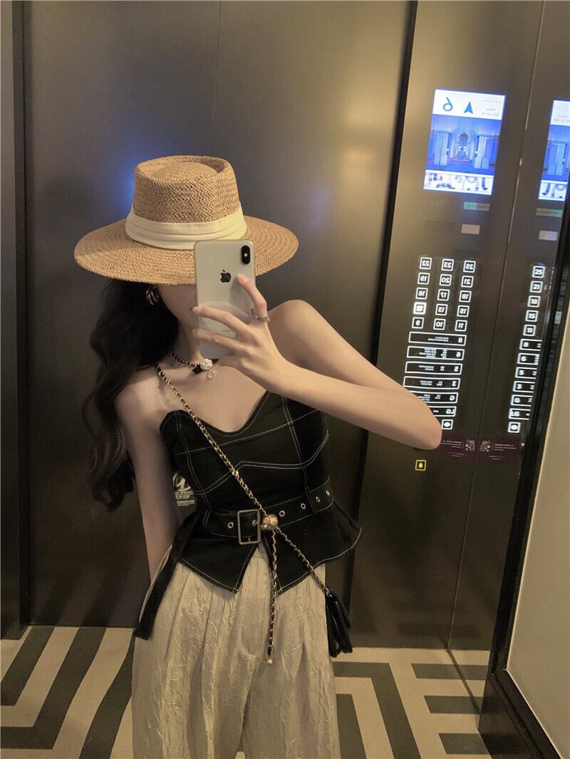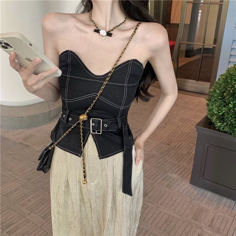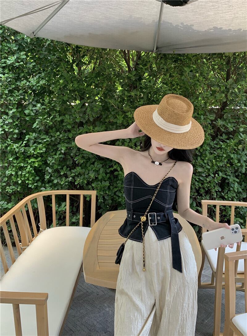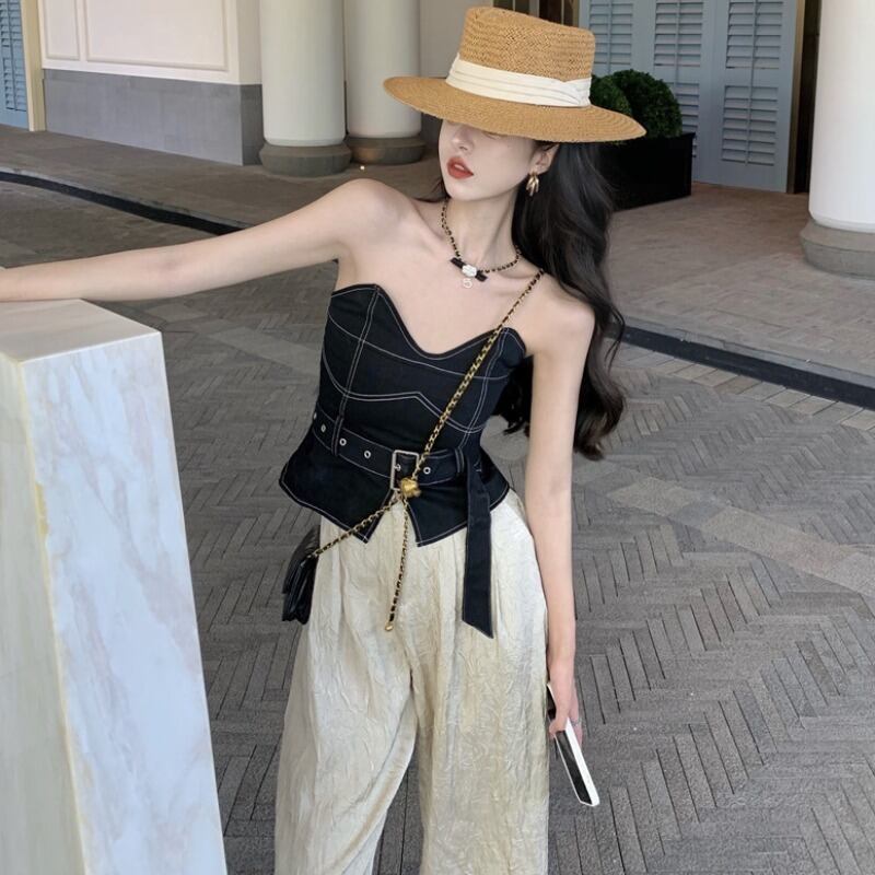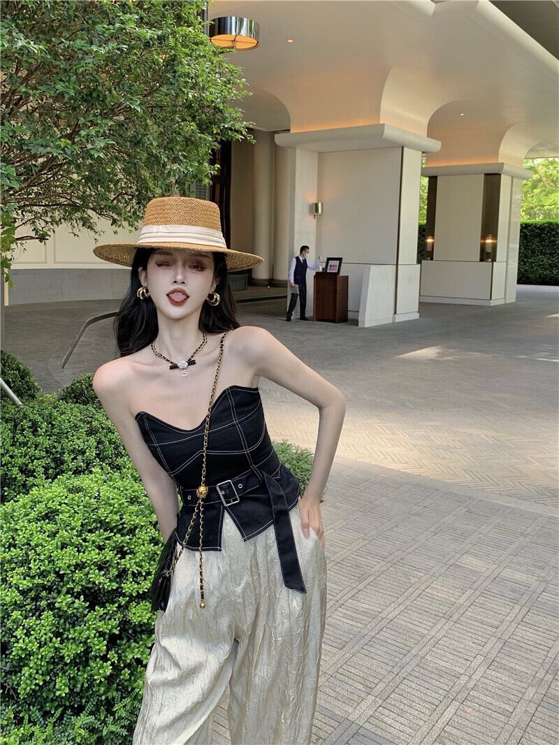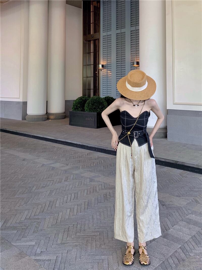 色:チューブトップ,ワイドレッグパンツ