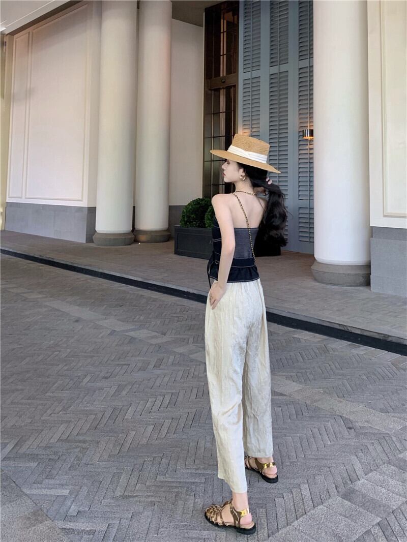 サマーショートトップス ハイウェストウェストルーズ薄手パンツ 夏物 YY-ファッション73306123213