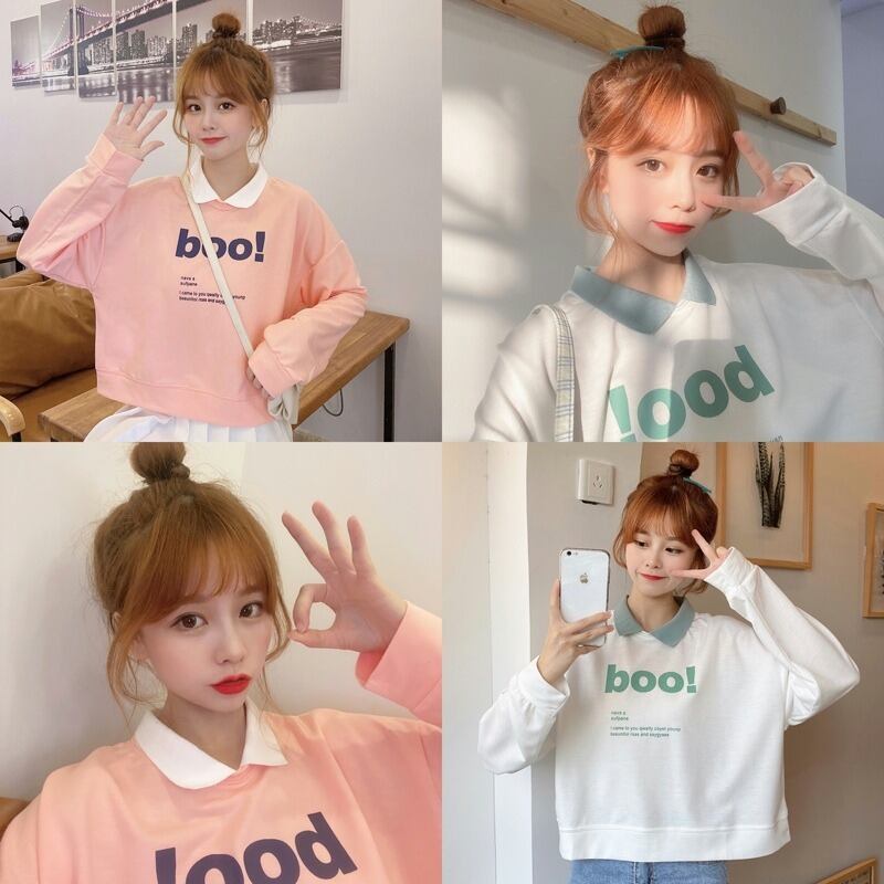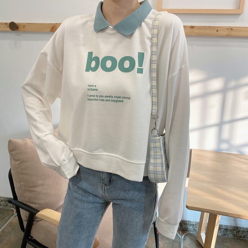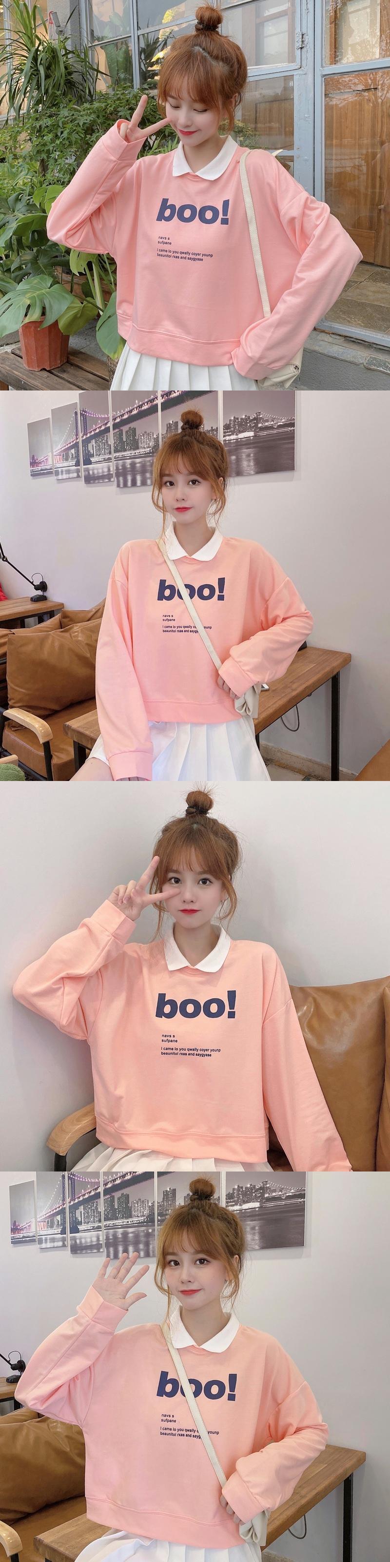 プリントショートセーター オータム薄手レッドルーズカラートップス 秋物 YY-ファッション23940778998