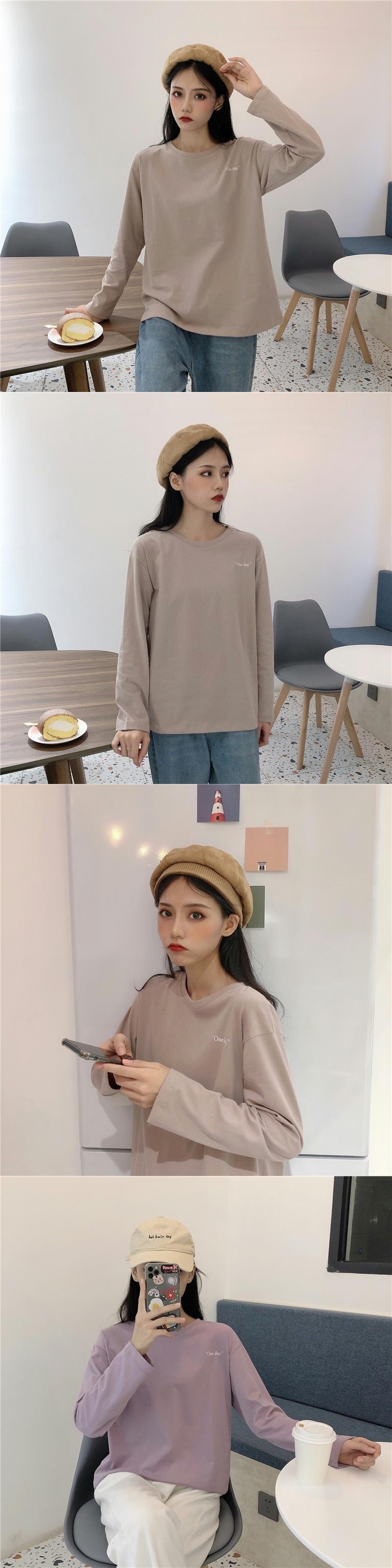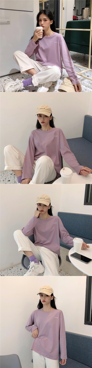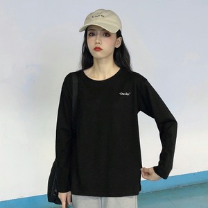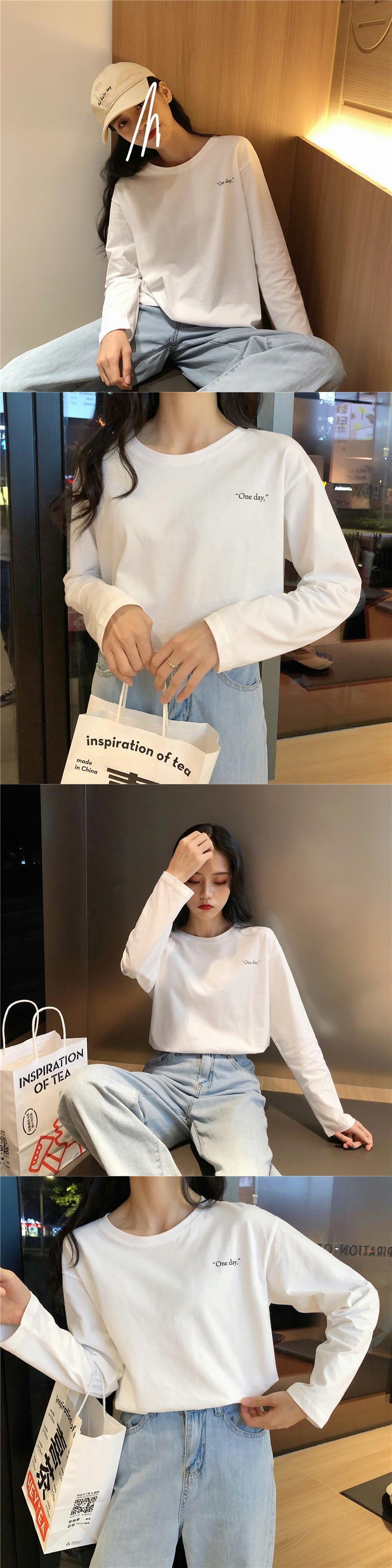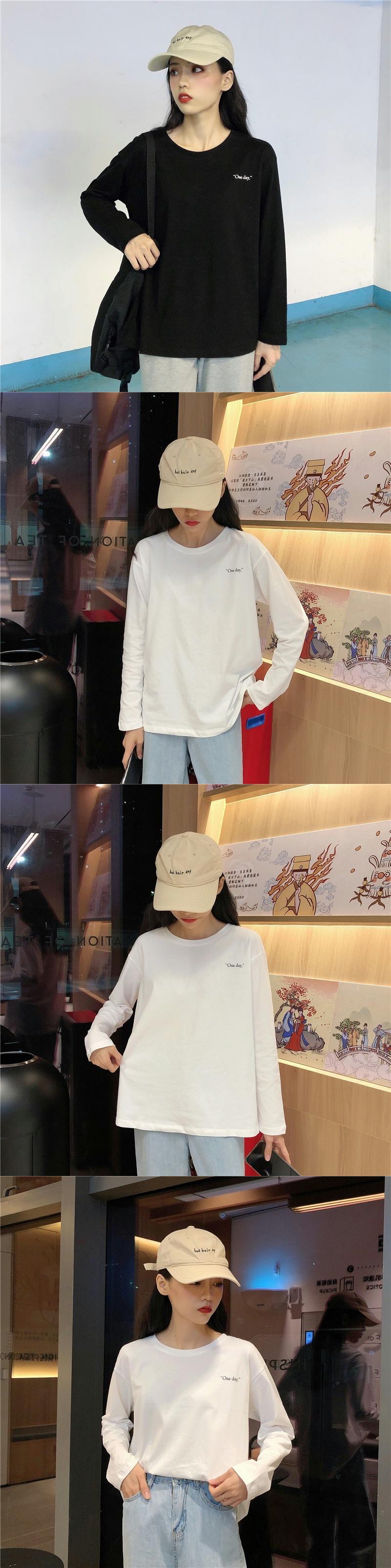 オータムソリッド カラープリントTシャツ トップス ロング 秋物 ソリッドカラー YY-ファッション37834808779