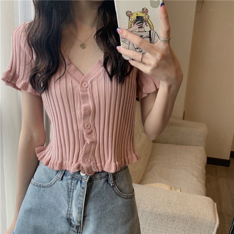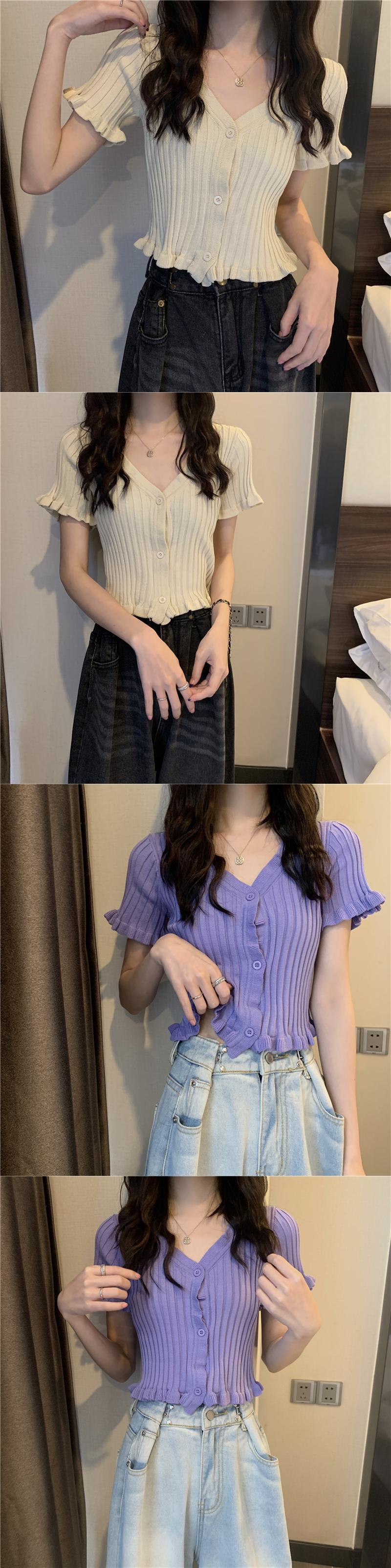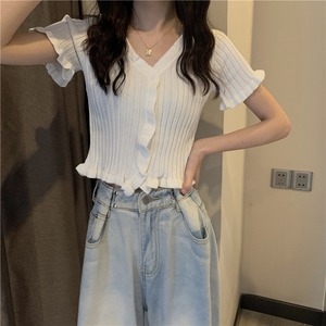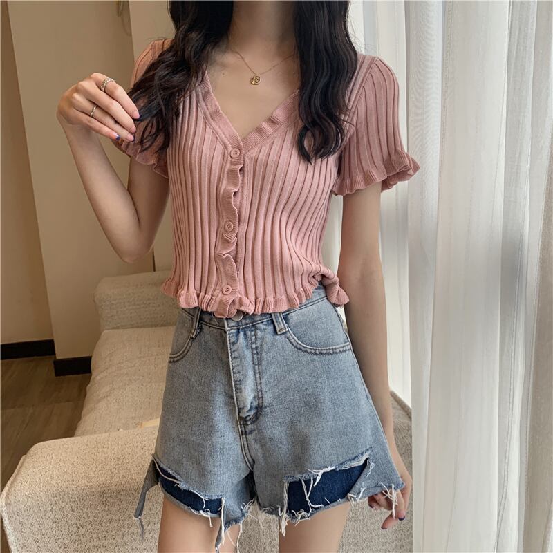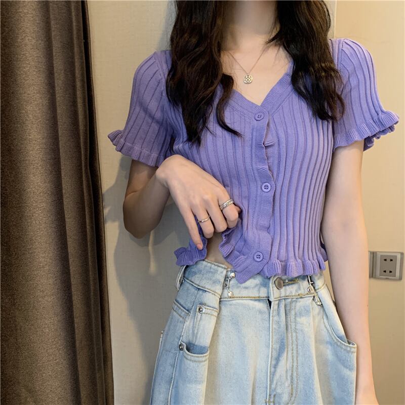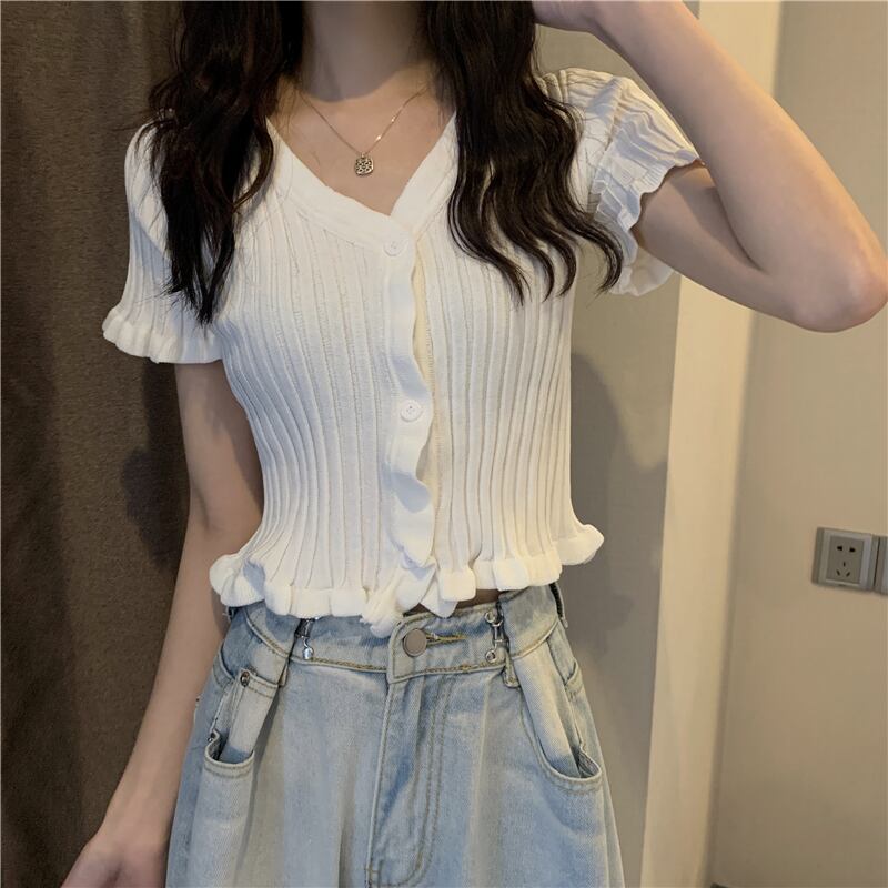 薄手ニットカーディガンサマーVネックショートトップス スリムブラックTシャツ 夏物 YY-ファッション9740737483