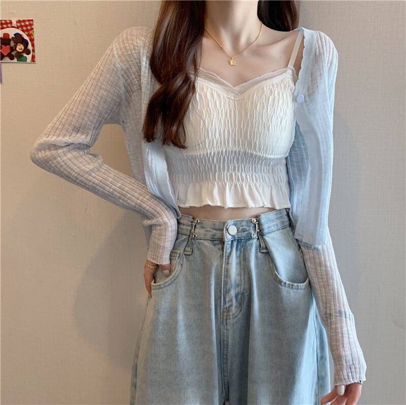 色:ホワイトサスペンダー,白いカーディガン,ブラックサスペンダー,ブルーカーディガン