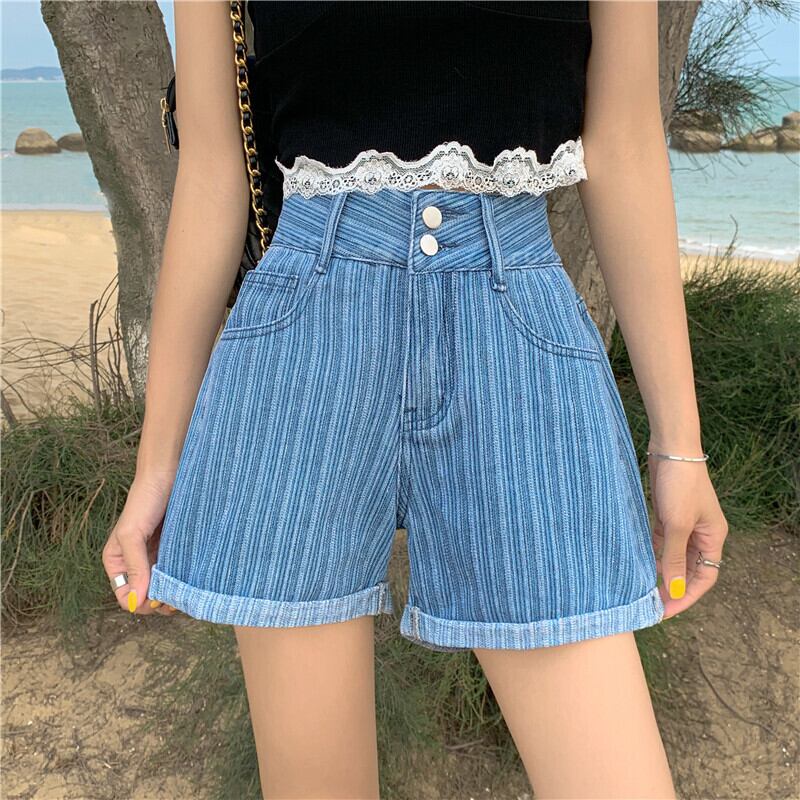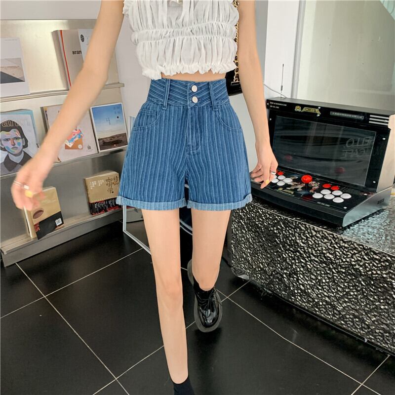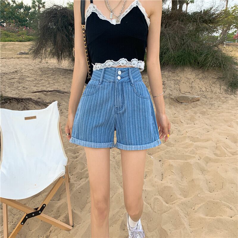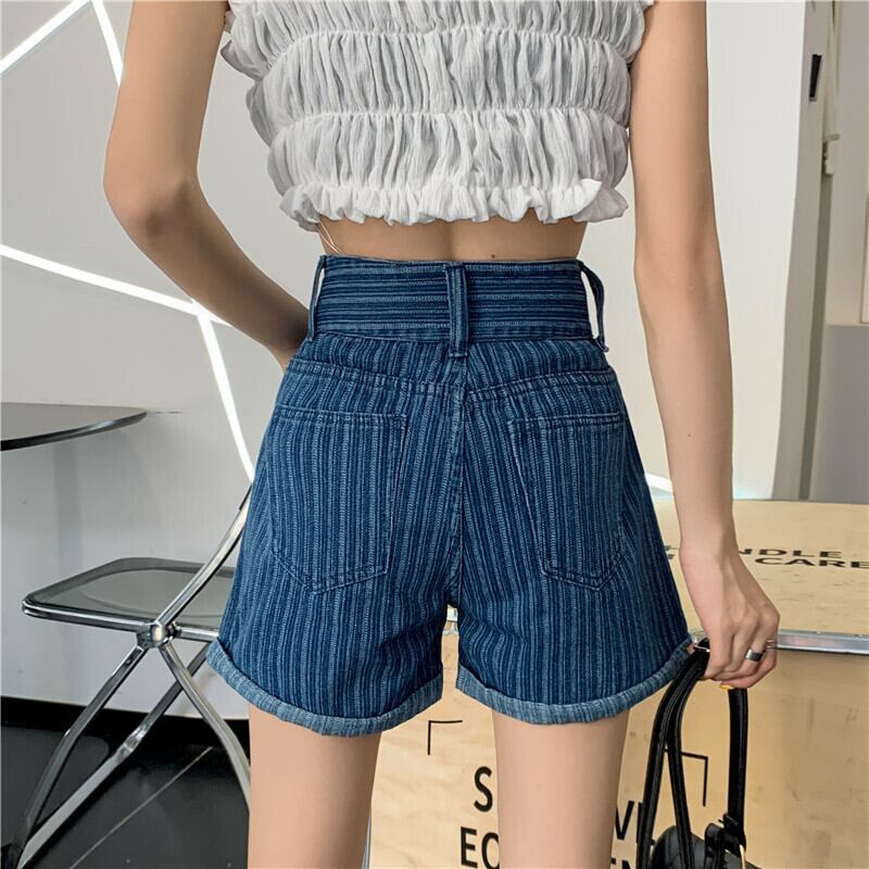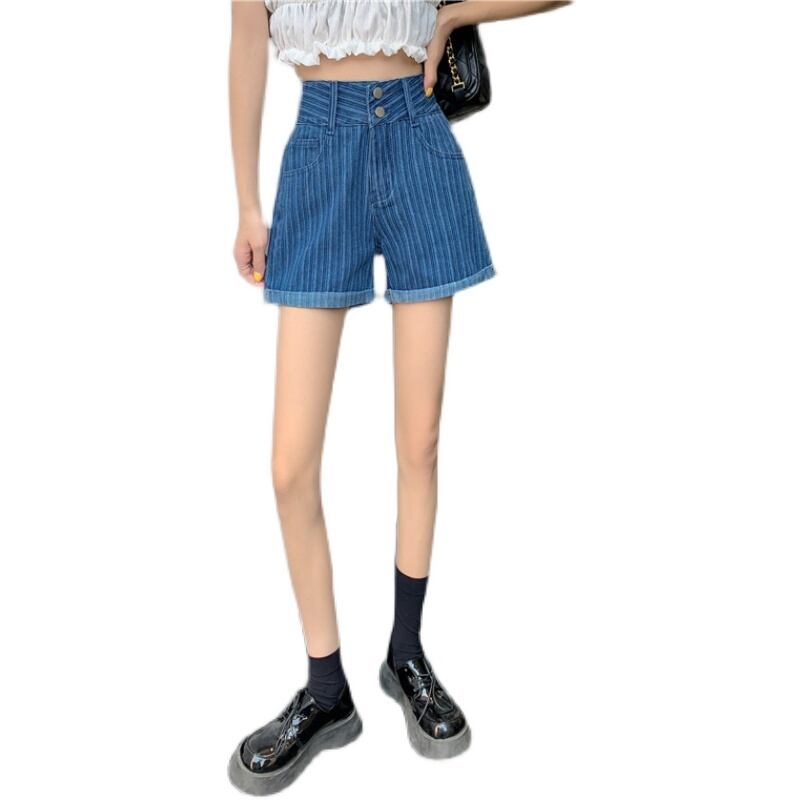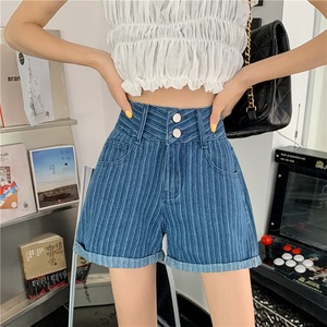 スタンダードストライプショーツ サマーレッドルーズハイウェストウェスト薄手ワイドレッグパンツ レトロ 夏物 ブルマー ワイドパンツ YY-ファッション35901981713