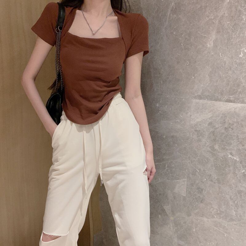 ショートTシャツ サマースタイルトップス 半袖 ハーフスリーブ 夏物 スクウェア YY-ファッション77539994164