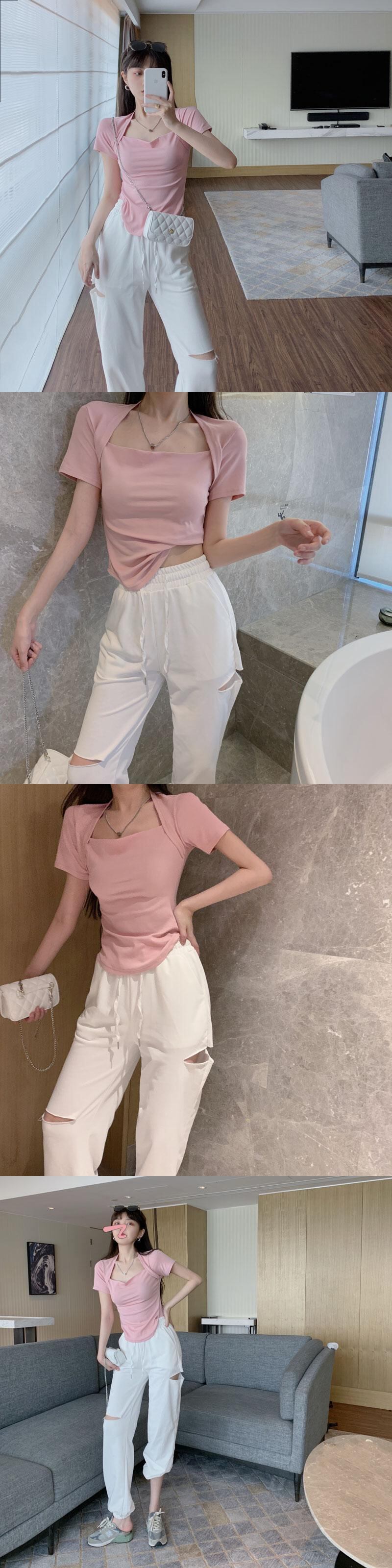 色:カードカラートップ8148,ピンクのトップ8148,ホワイトカットスウェットパンツ8149,アプリコットカットスウェットパンツ8149