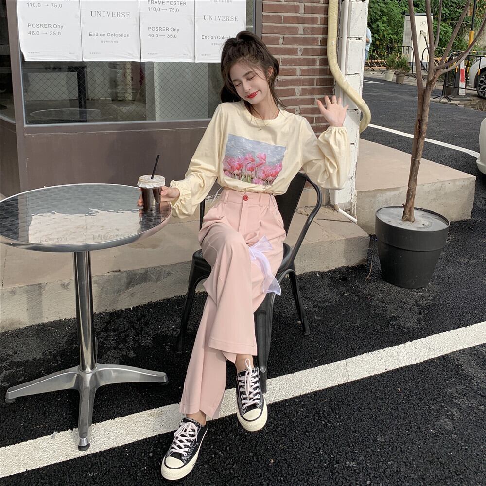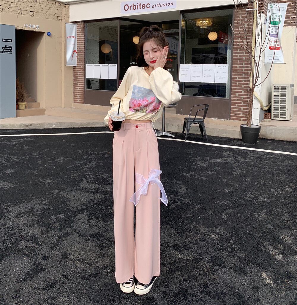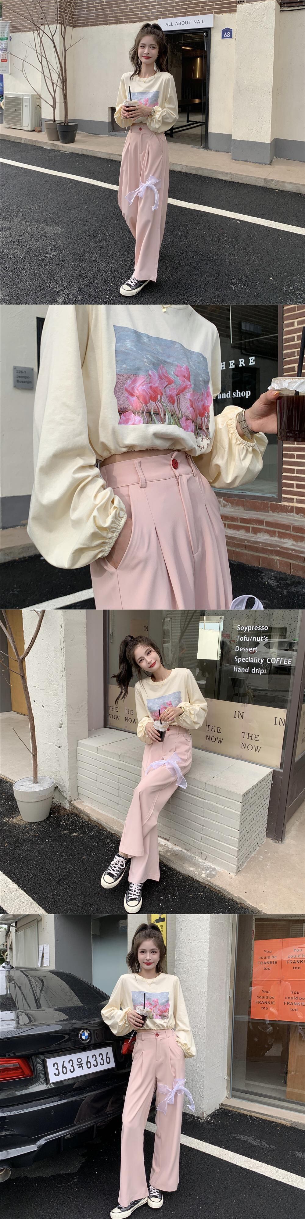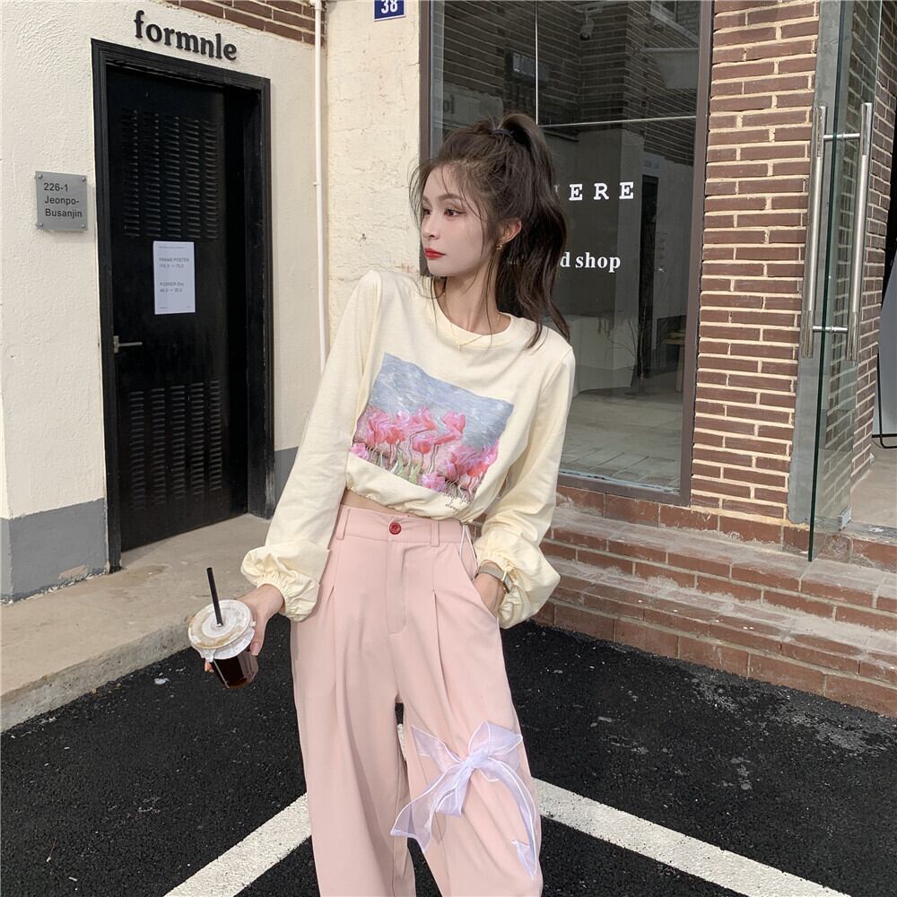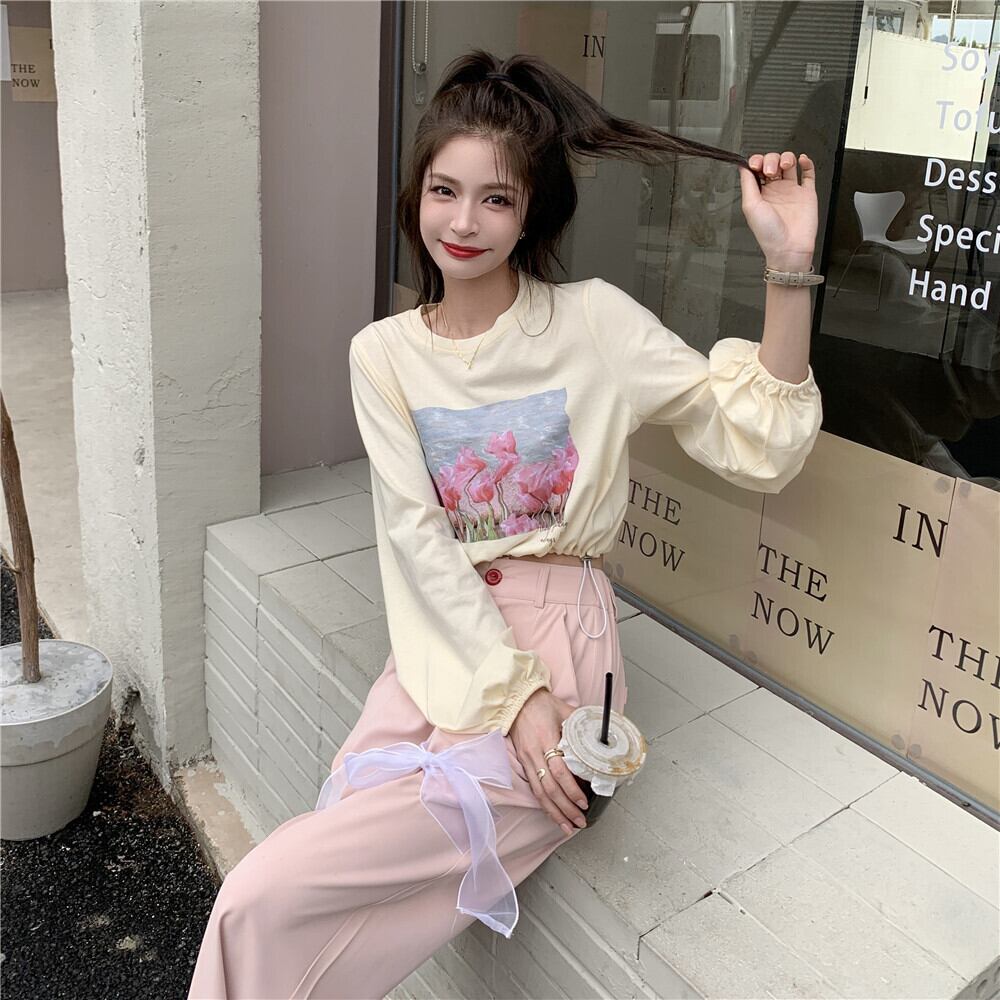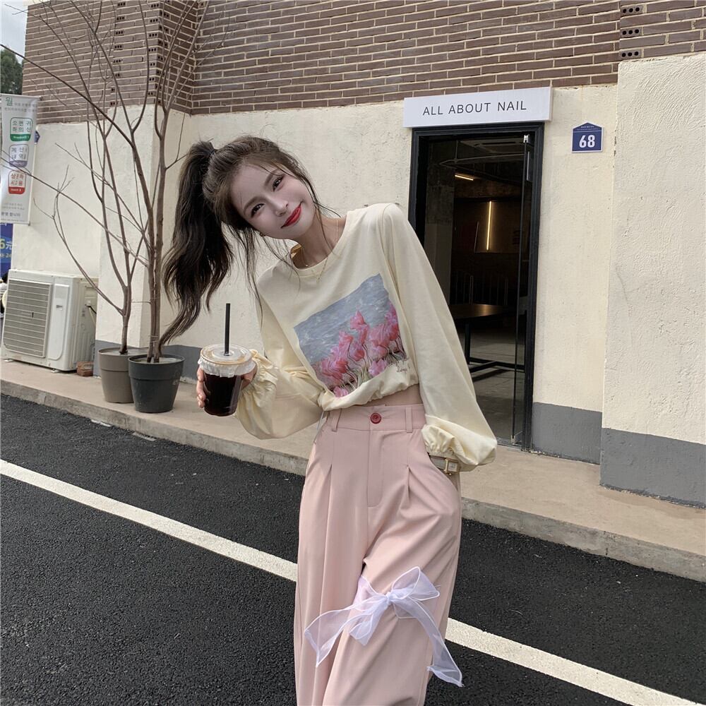 プリント柄ショートTシャツ トップス ルーズリボン ロング 大人ガーリー スウィート キュート カジュアル YY-ファッション71235564683