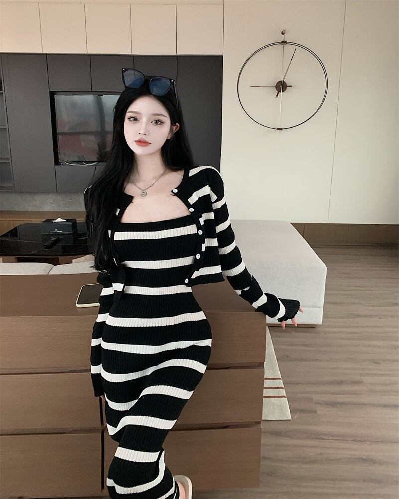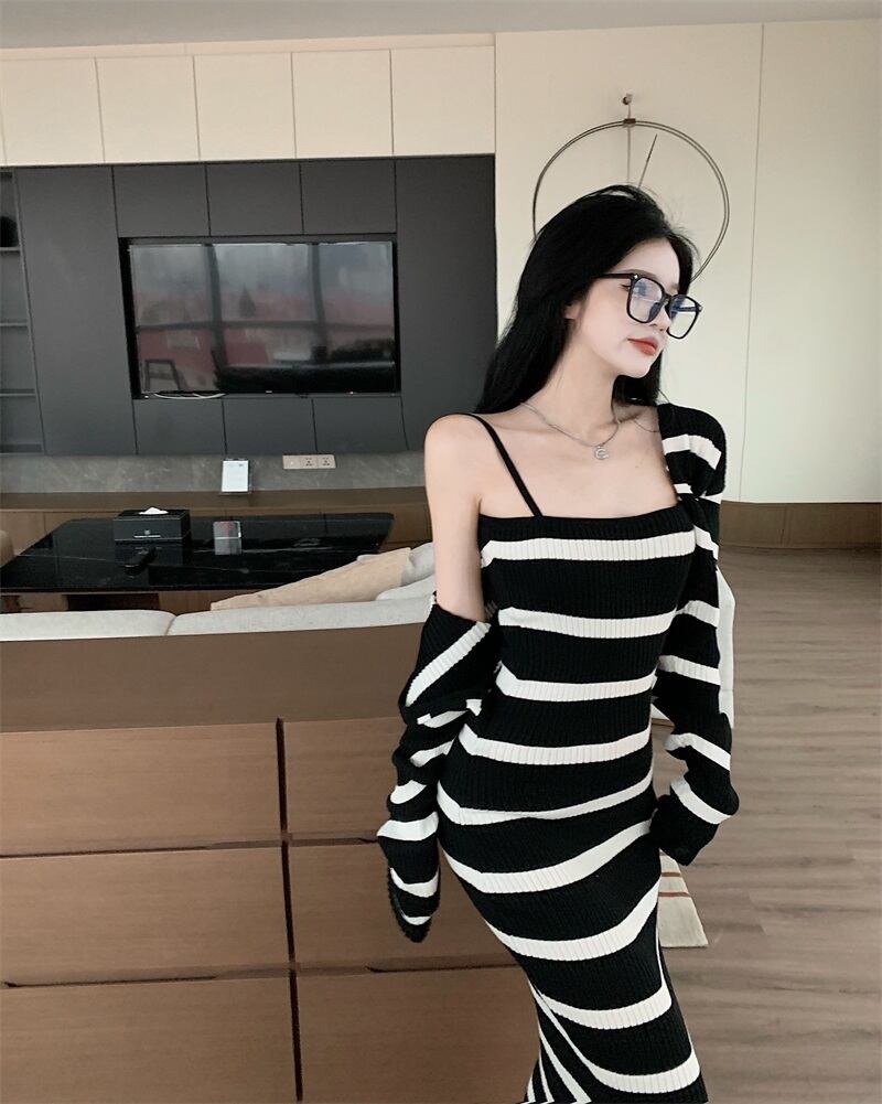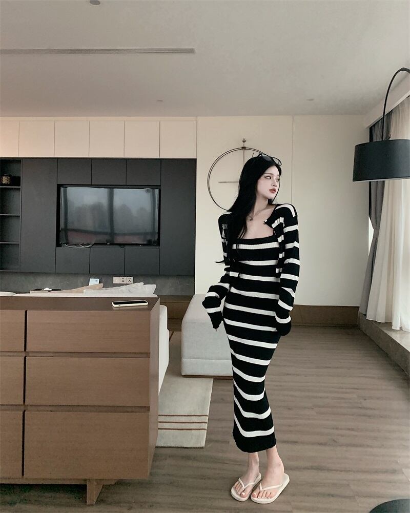 トップス ストライプドレス サマーカジュアル薄手ニットセーター 夏物 YY-ファッション41004576617
