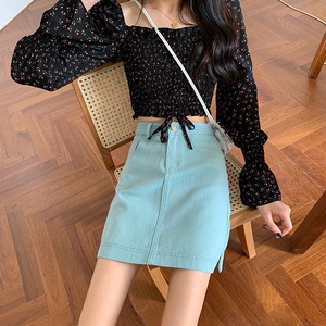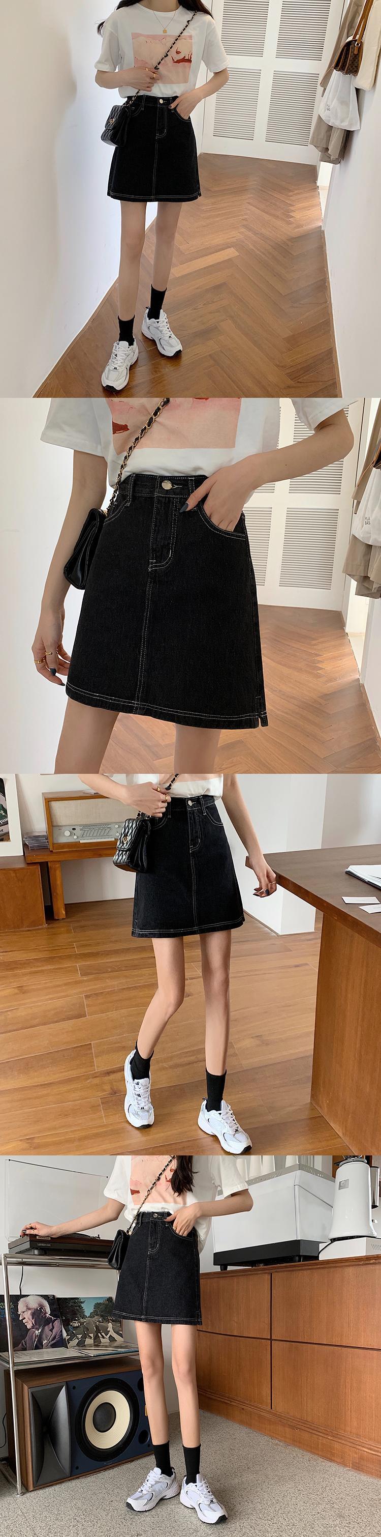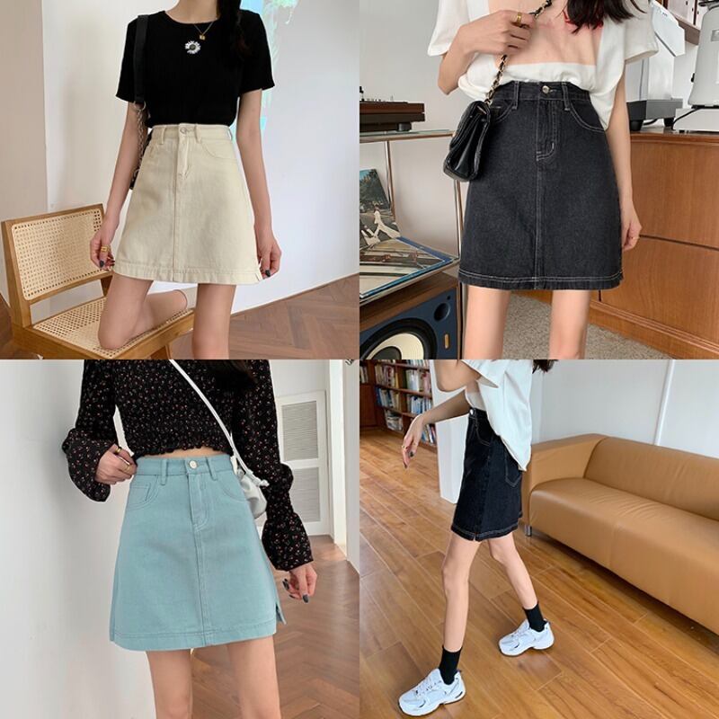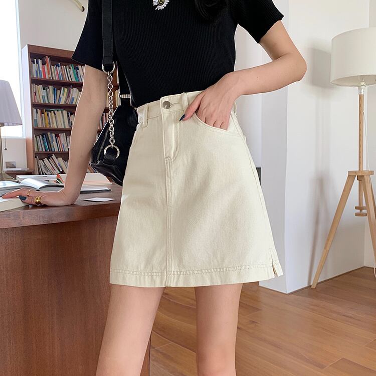 ブラックスリットハイウェストウェスト薄手Aラインショート サマー 夏物 スカート YY-ファッション90381015764