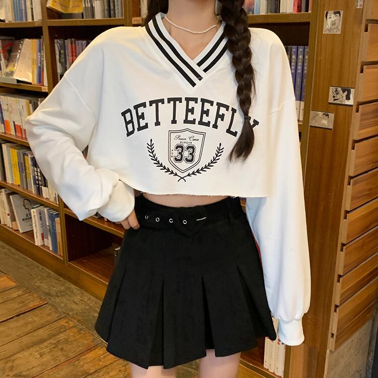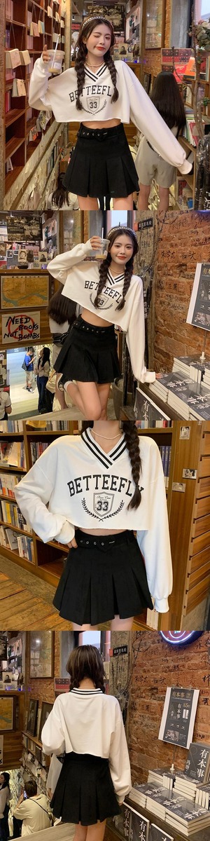 スタンダードスタイルショートVネックセーター サマープリーツスカート ロング レトロ 夏物 YY-ファッション78969047699