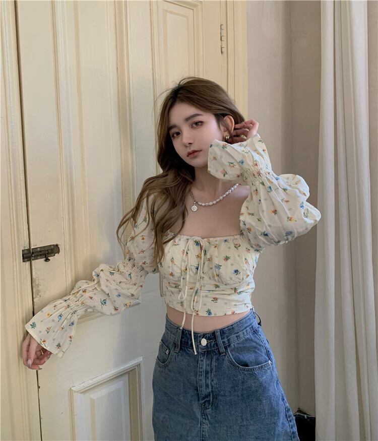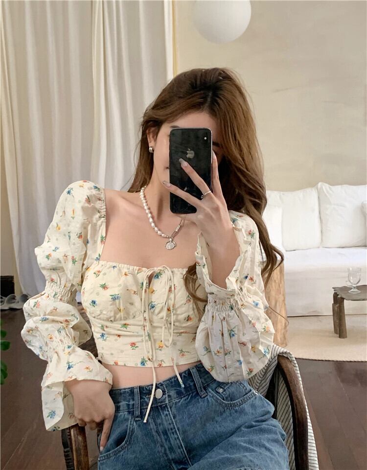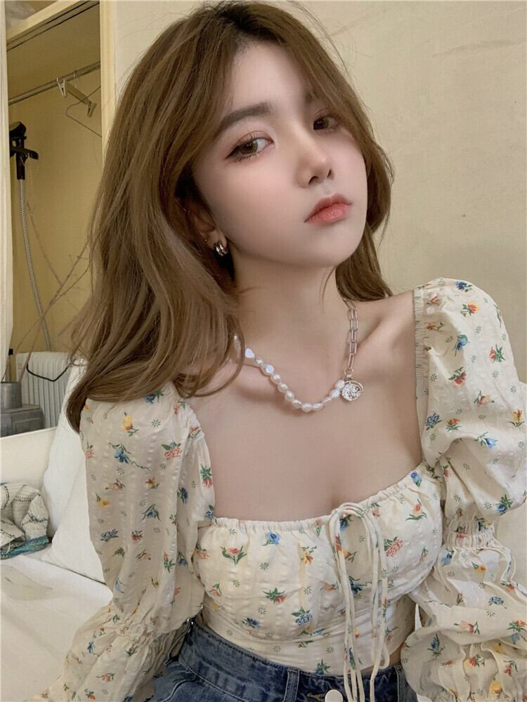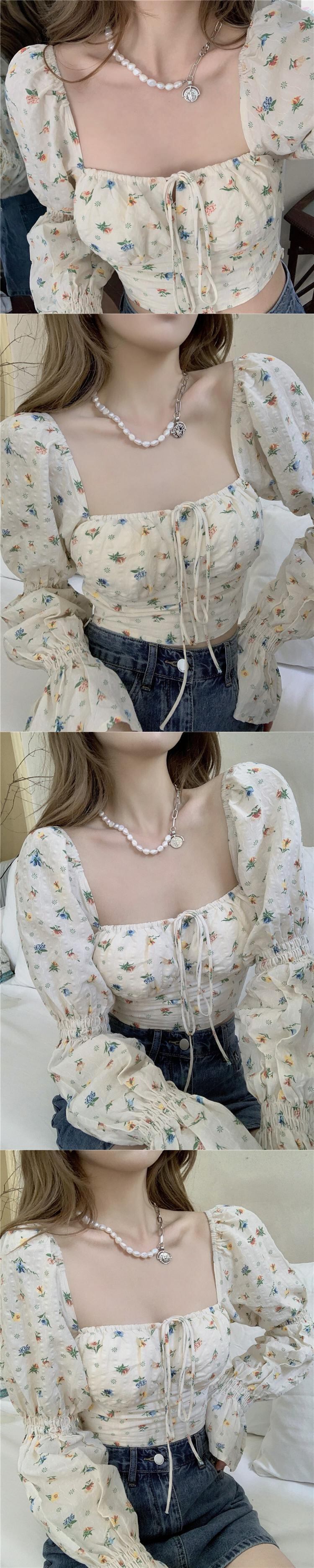シャツ フローラルサマーショートトップス ロング 夏物 花柄 スクウェア YY-ファッション527811925
