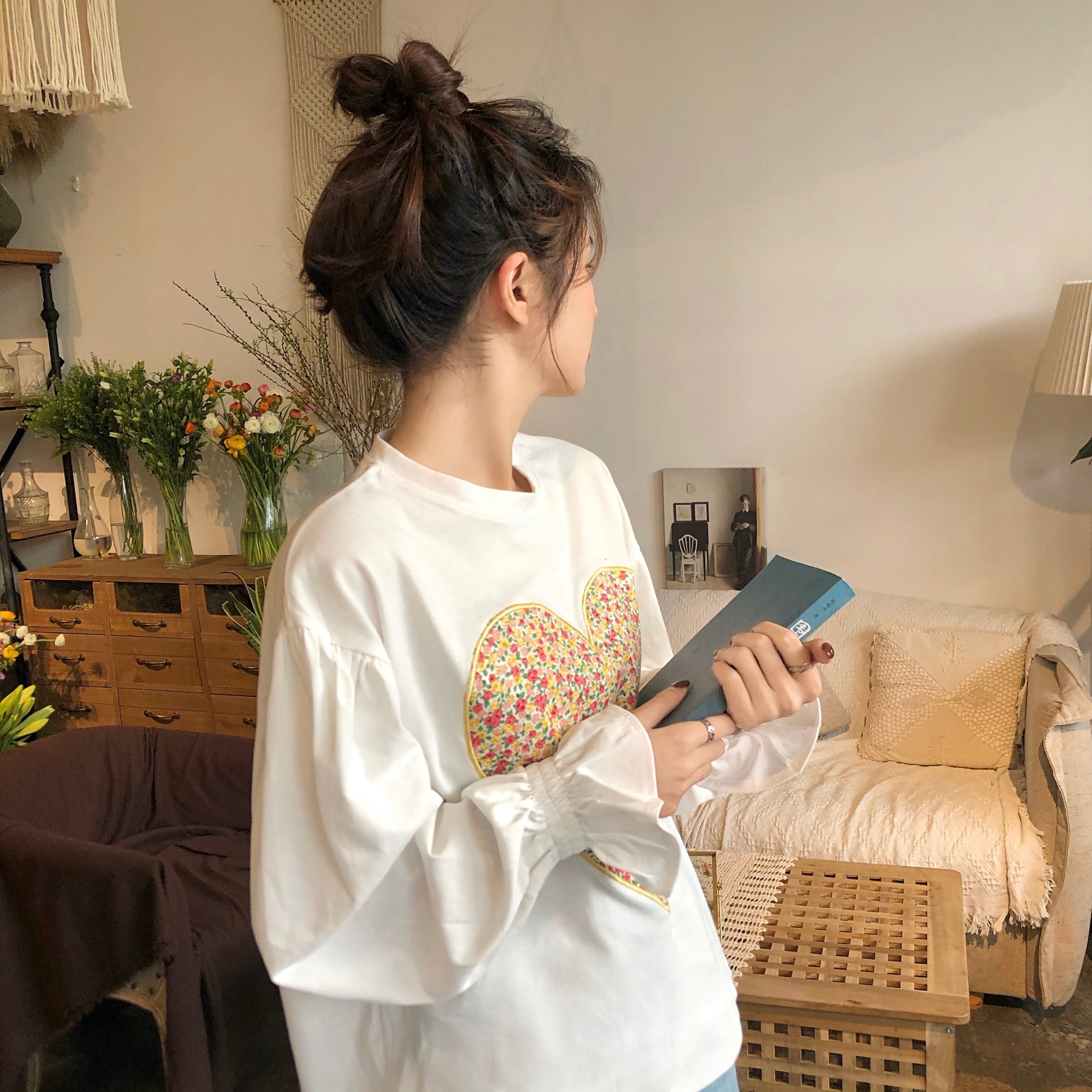 フローラルハートトップス サマールーズスリーブTシャツ レッド 刺繍 大人ガーリー スウィート キュート カジュアル 夏物 花柄 YY-ファッション86510936782