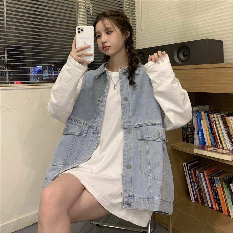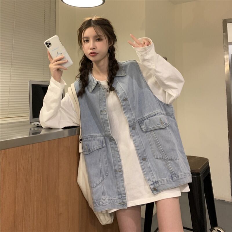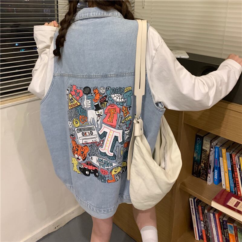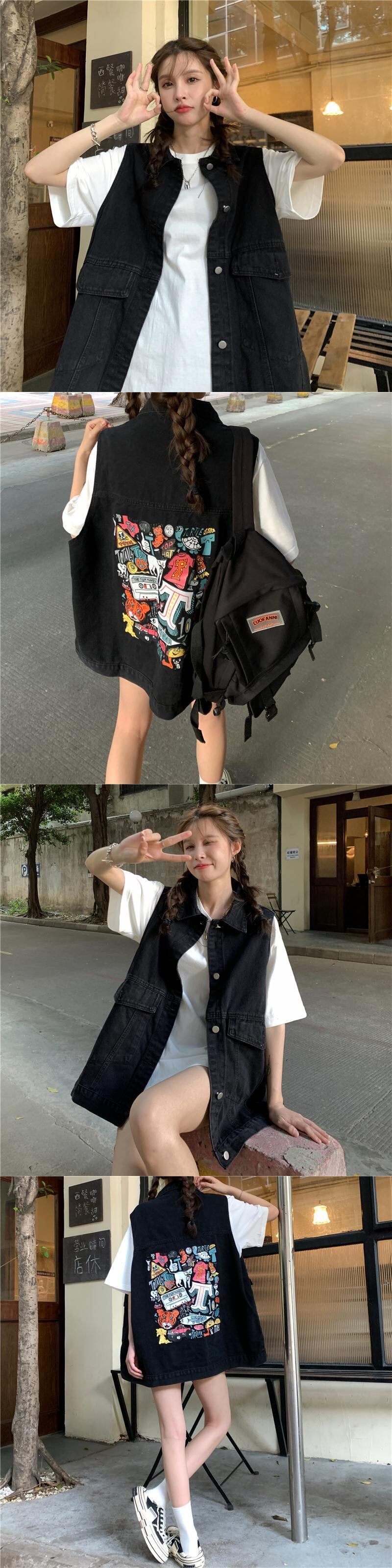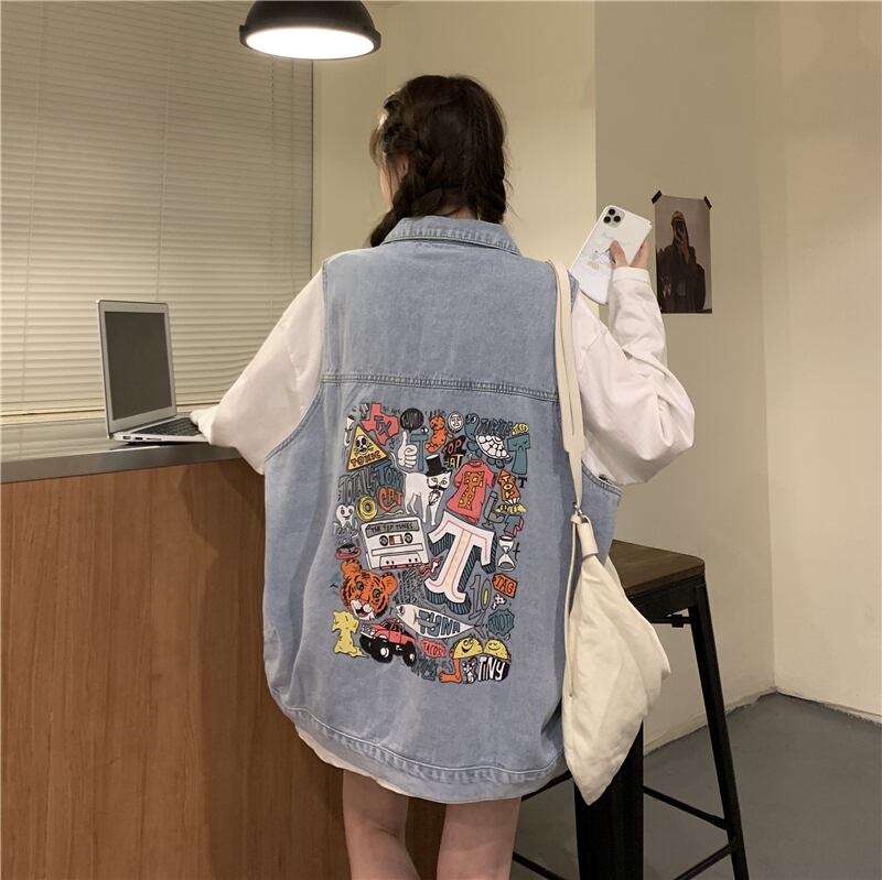 スプリングサマースタンダードバックプリント柄ルーズノースリーブジャケット トップス レトロ 春物 夏物 YY-ファッション6799707182