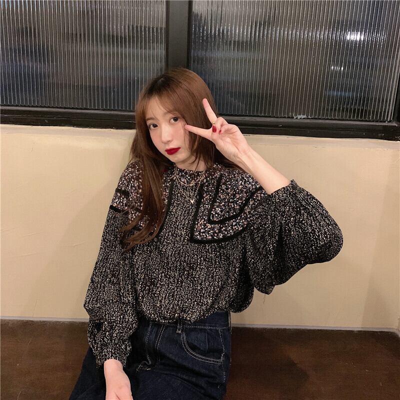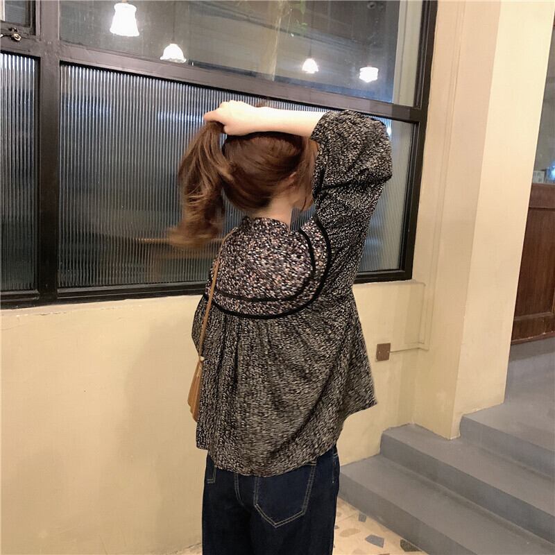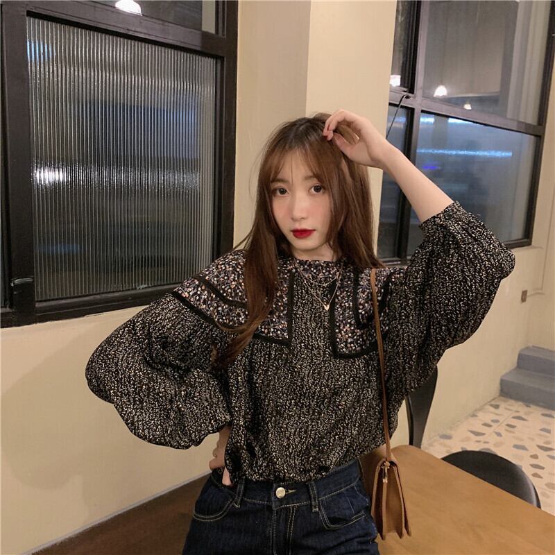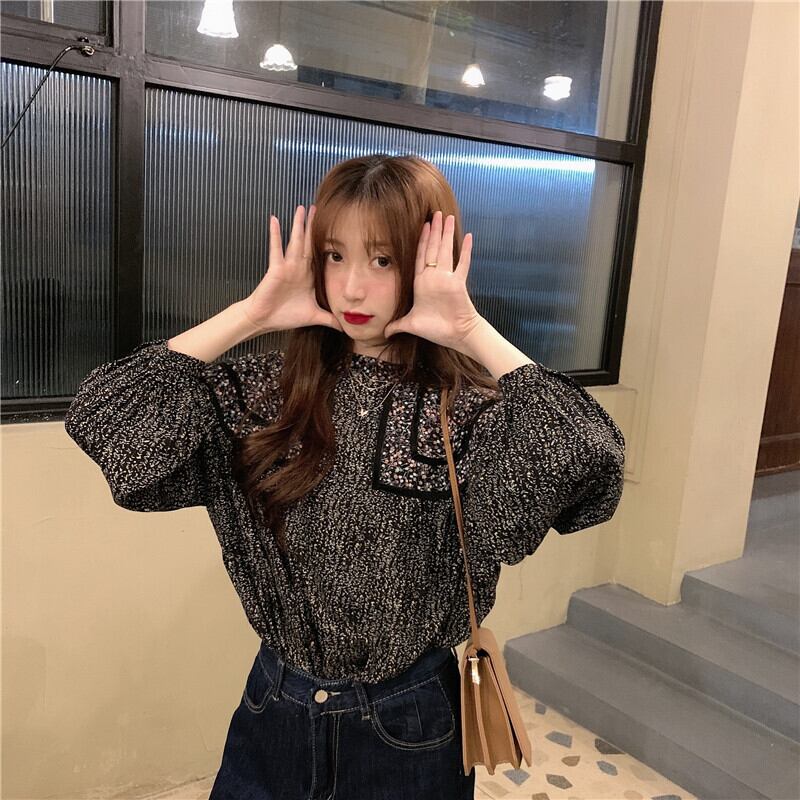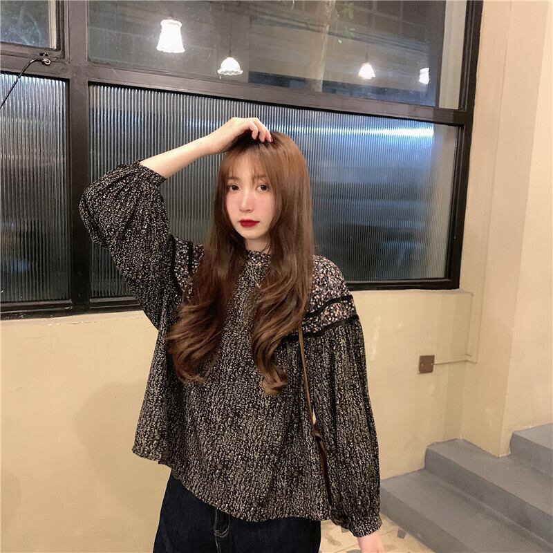 スリーブフローラルスタンドカラーカラートップス サマールーズシャツ レディース ランタンスリーブ 夏物 花柄 ステッチ YY-ファッション68755758141