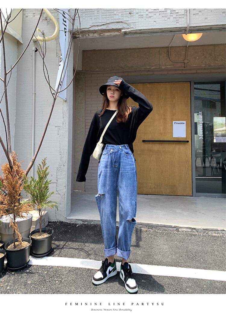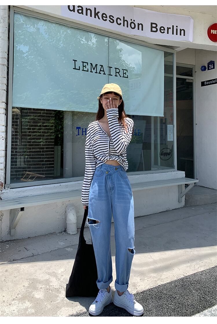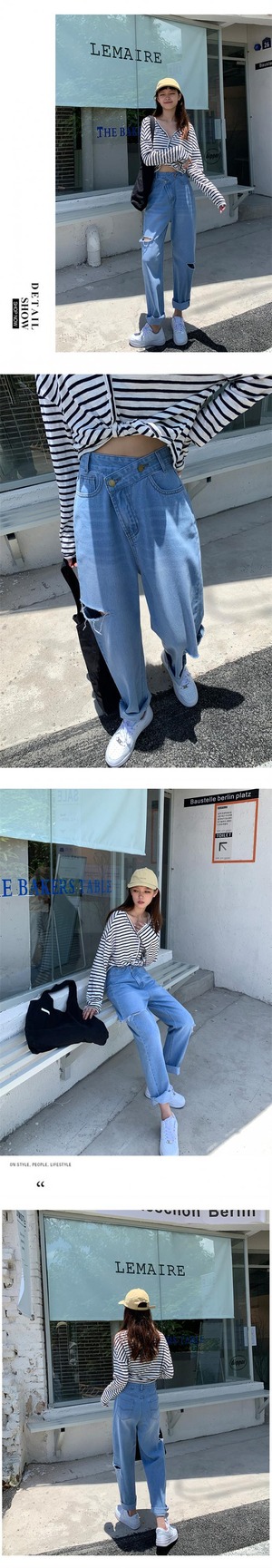 ハイウェストウェストルーズスリムジーンズ サマースタイルパンツ 夏物 YY-ファッション40025064823