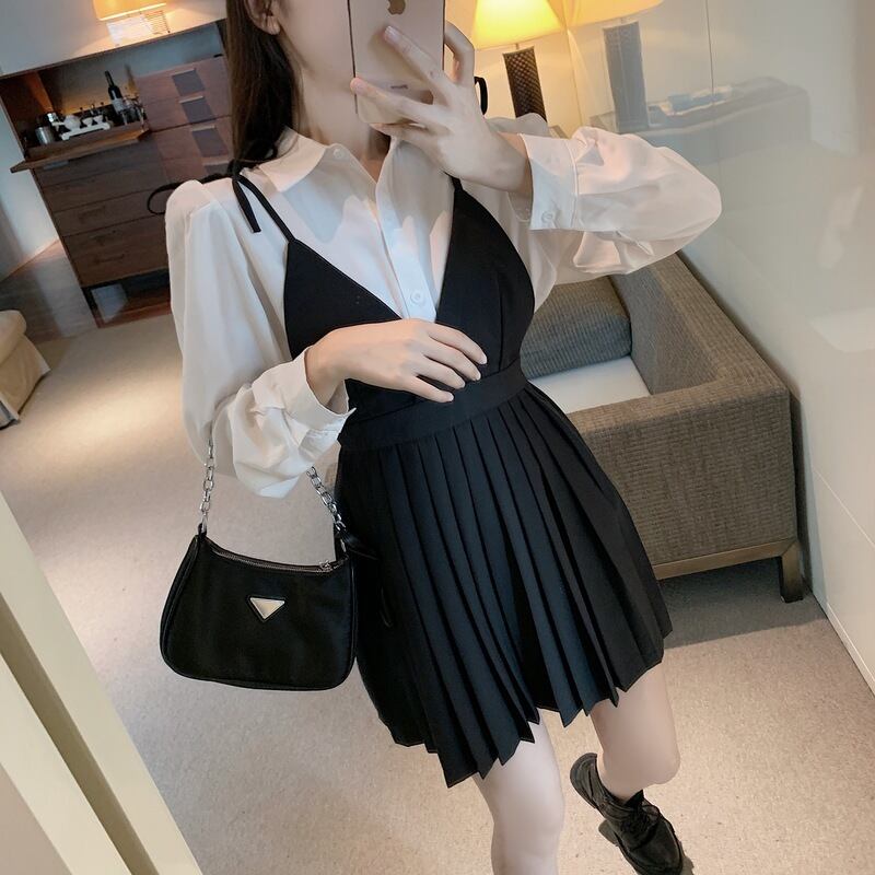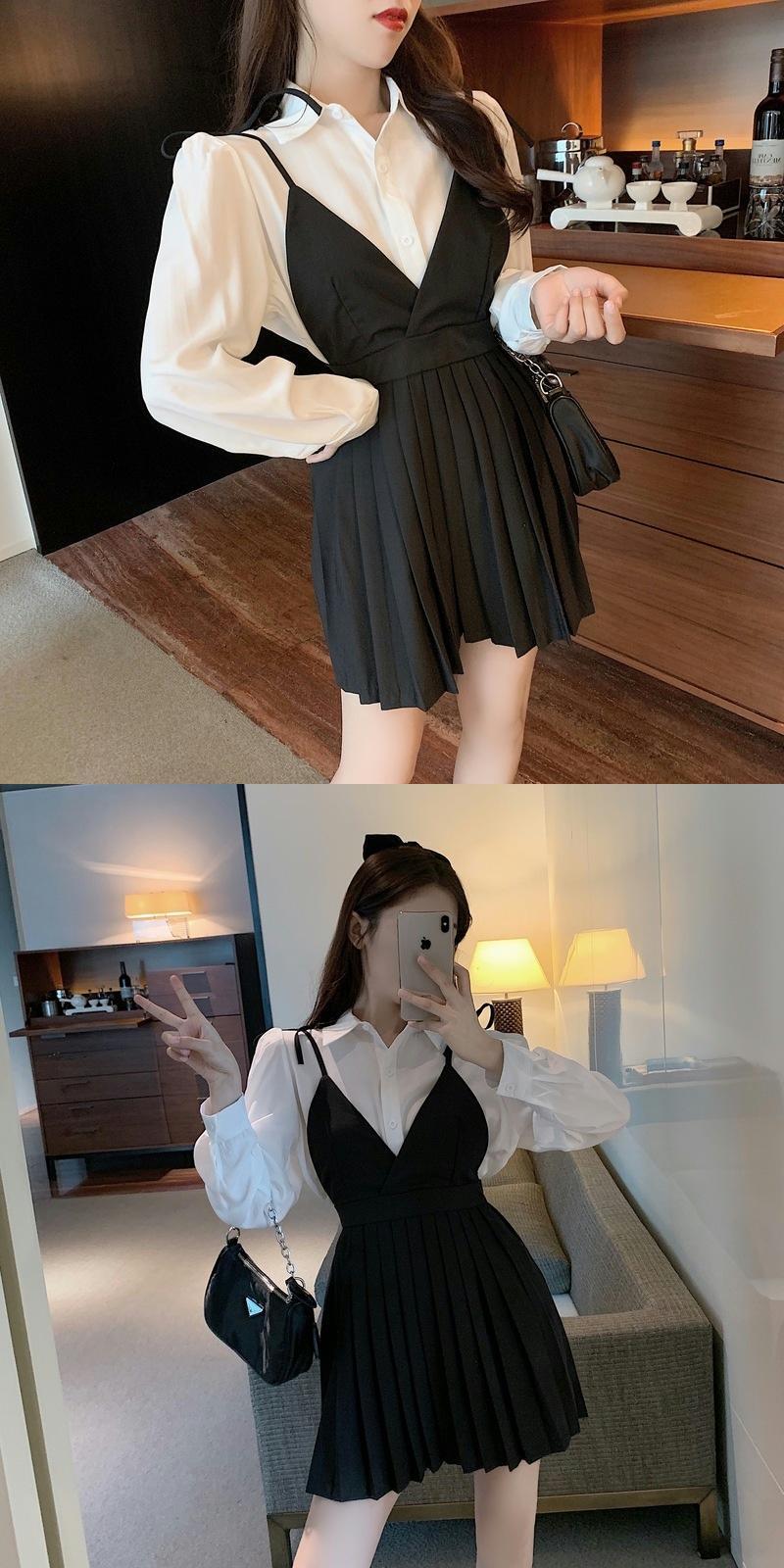 サマースタイルホワイトシャツ プリーツハイウェストウェストショートスカート 夏物 YY-ファッション6857908367