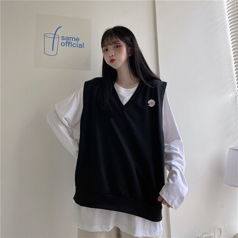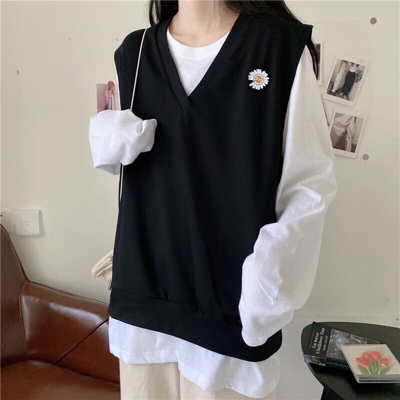 オータム薄手Vネックジャケット ルーズホワイトTシャツ ロング 秋物 YY-ファッション64611208349