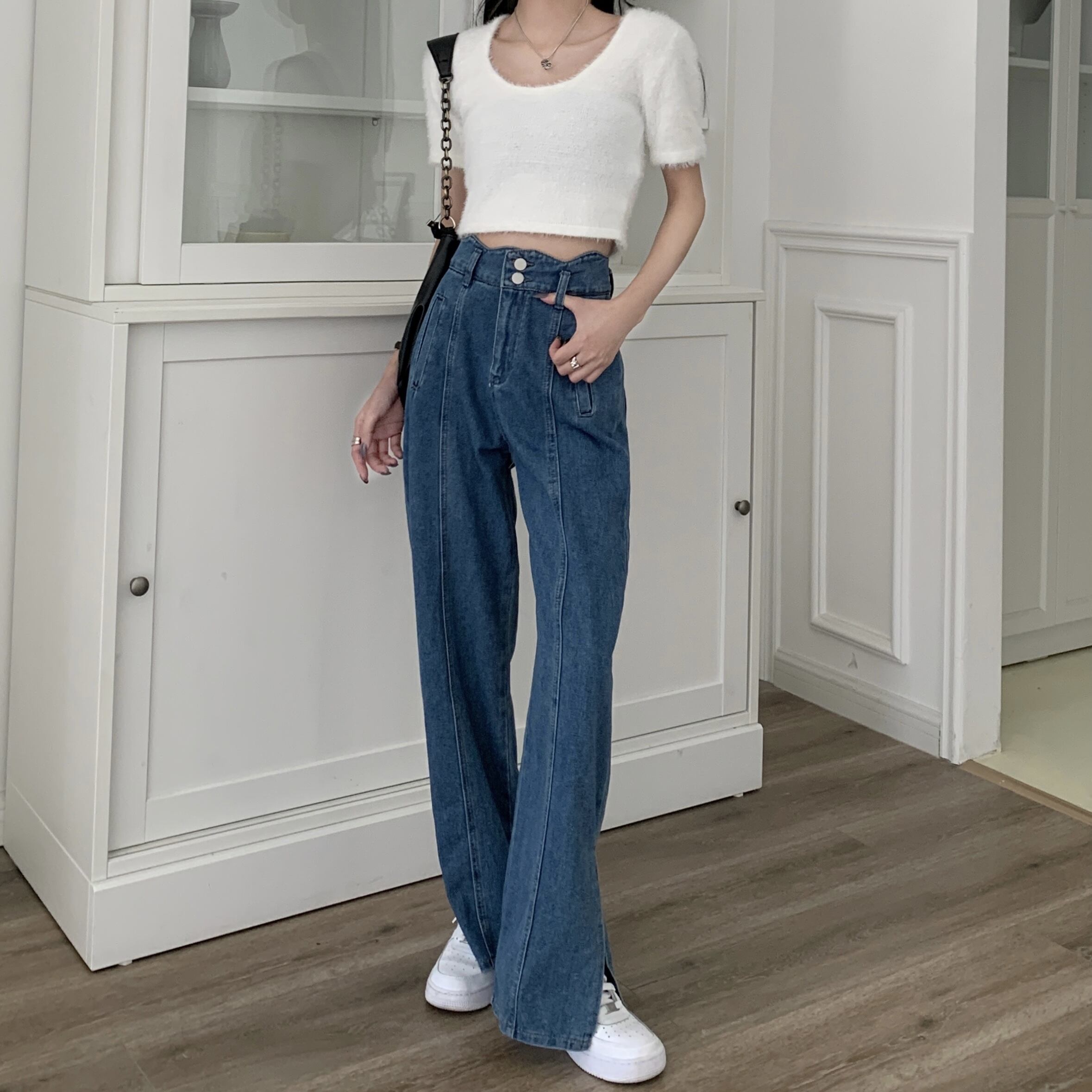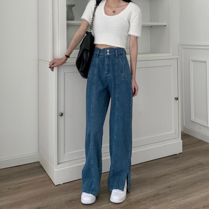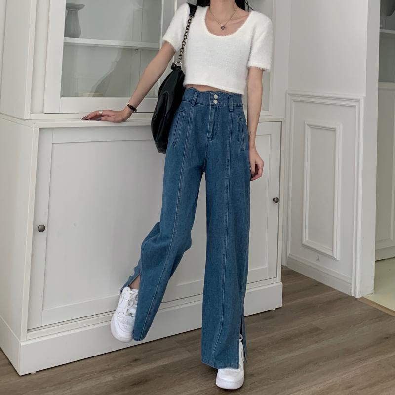 サマー薄手レースウェストスリットルーズジーンズ パンツ レディース レッド 夏物 YY-ファッション47610469697