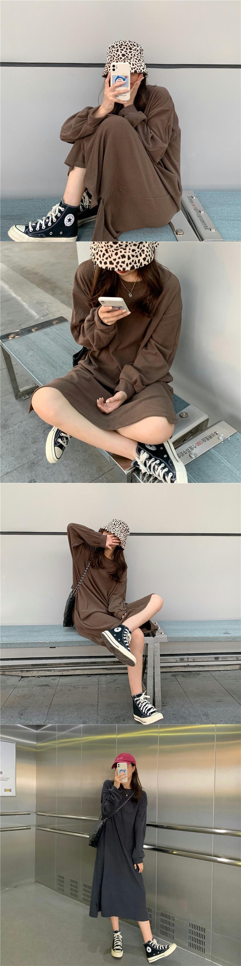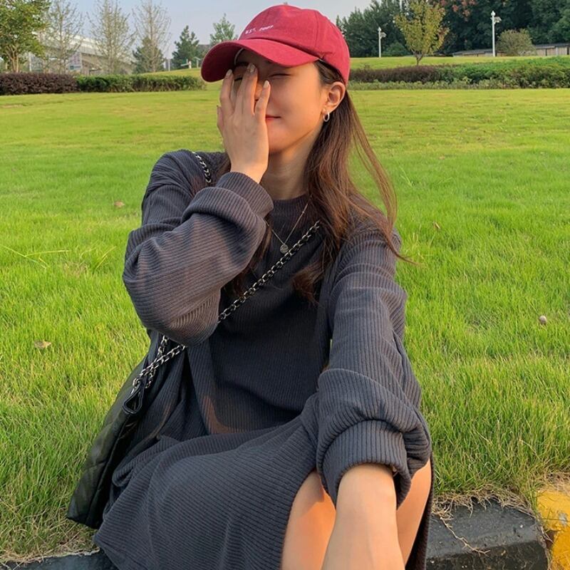 サマースタイルルーズスリムコーデュロイストライプロングセーター ドレス レディース 夏物 YY-ファッション78537993731