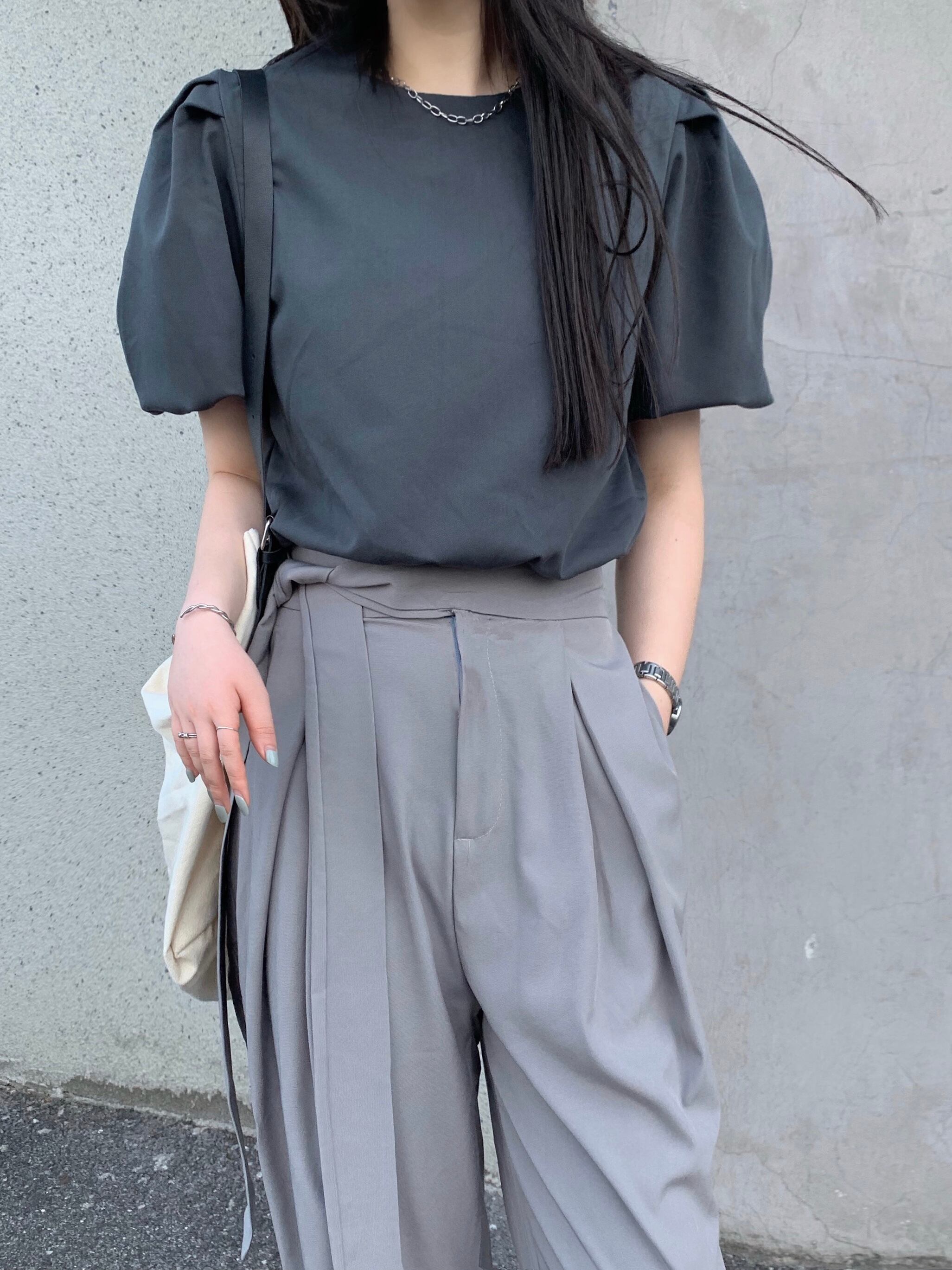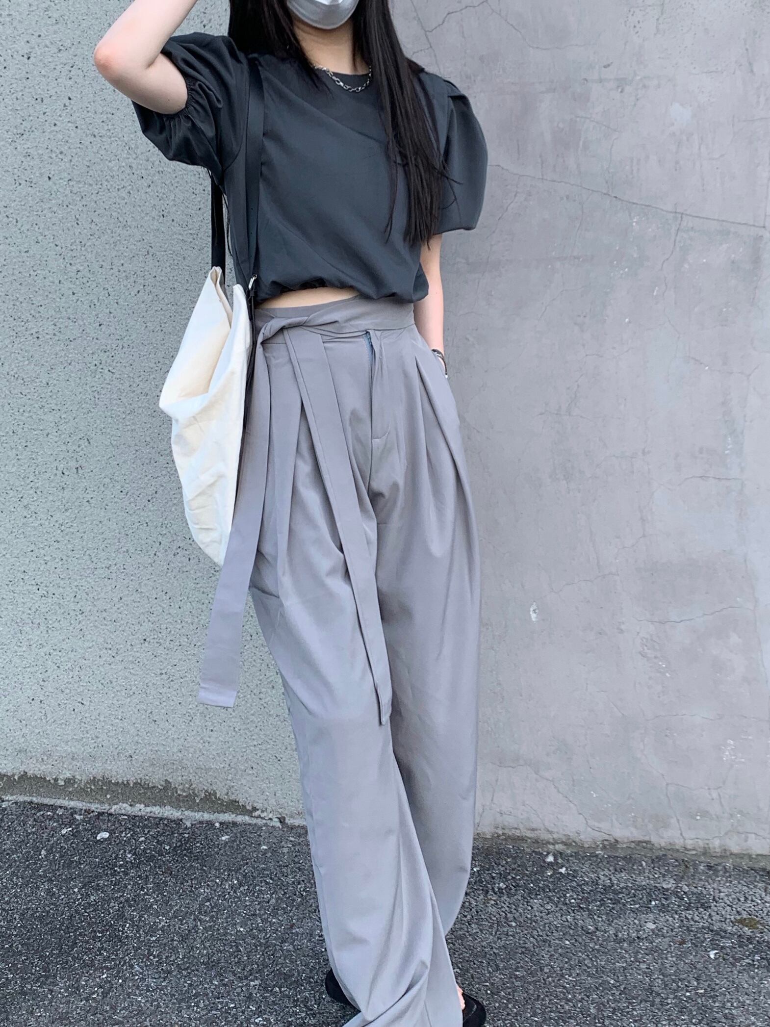 サマーミニマリストスタイルグレーボタンシャツ ハイウェスト レース 夏物 レースアップ YY-ファッション68018743092