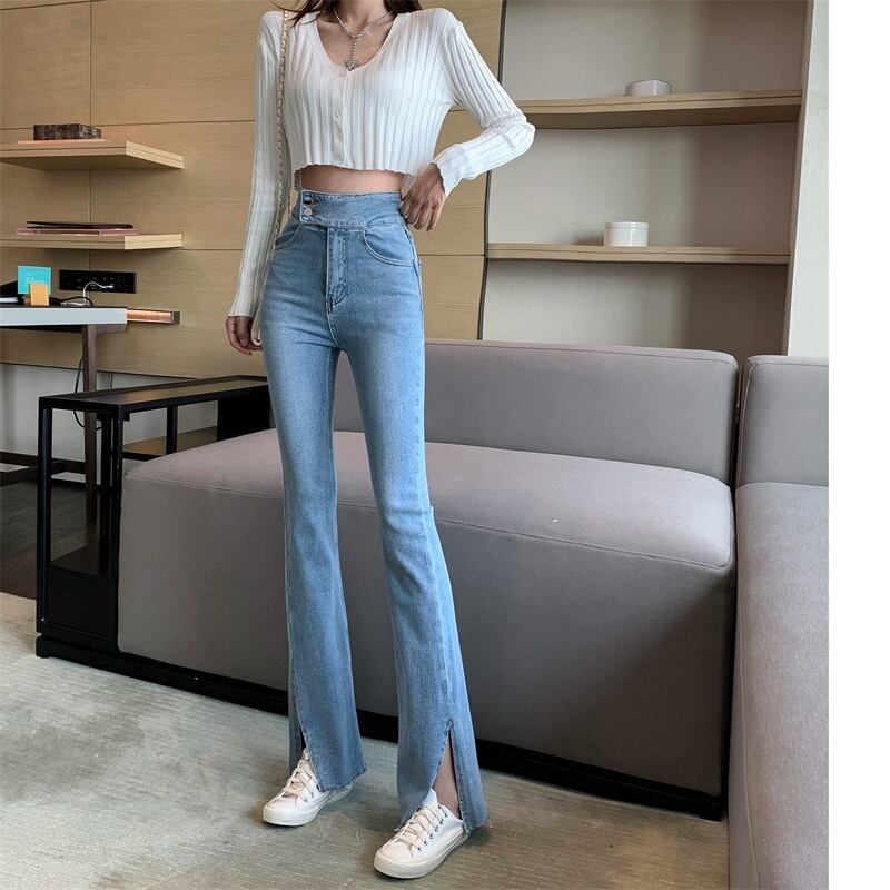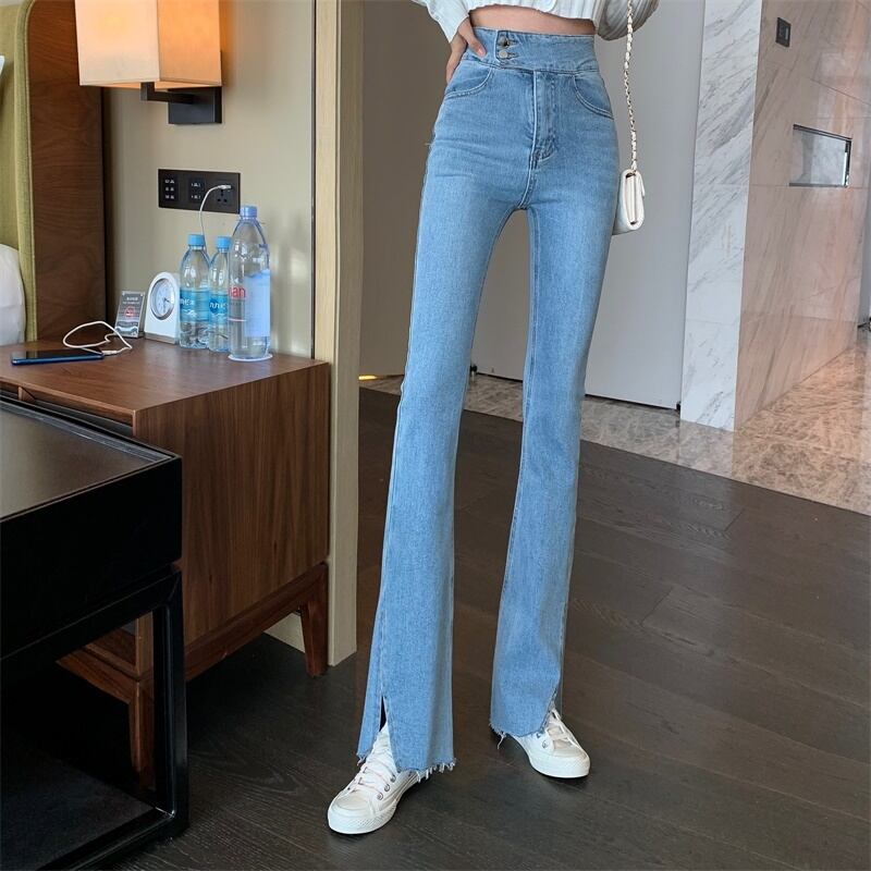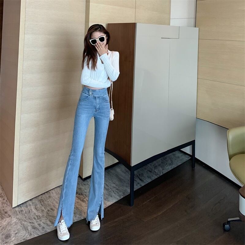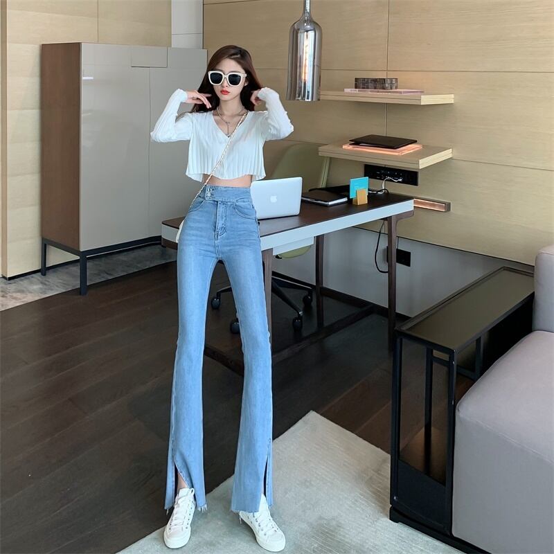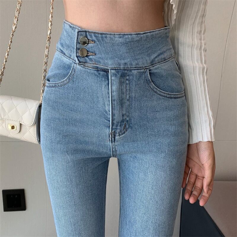 ジーンズ スプリングサマースリム薄手ハイウェストパンツ レッド 春物 夏物 YY-ファッション57329644818